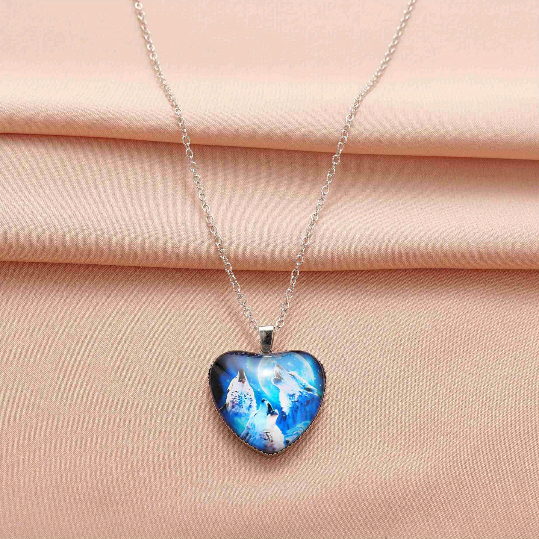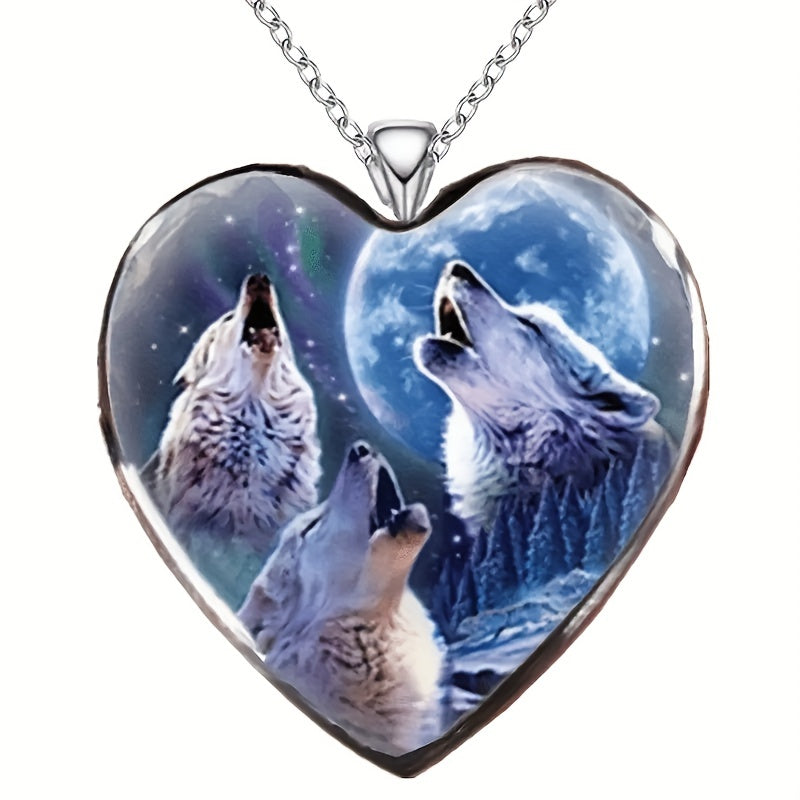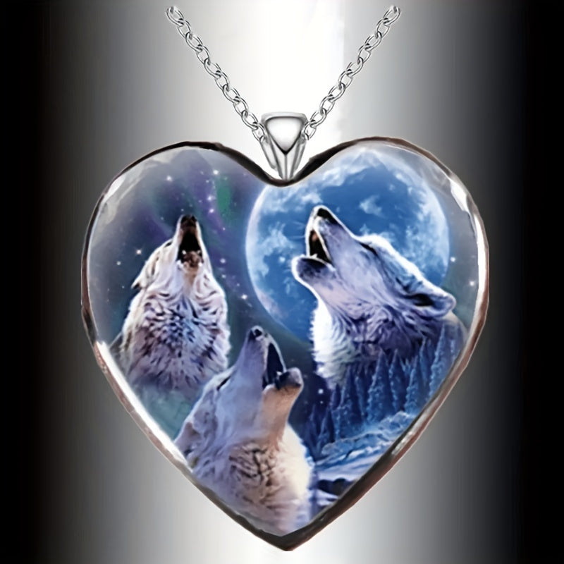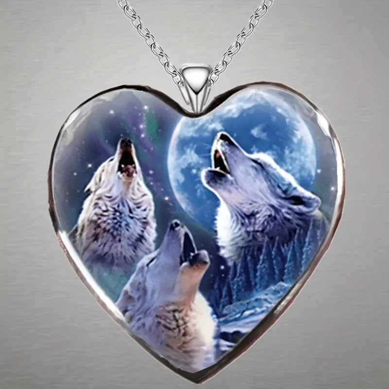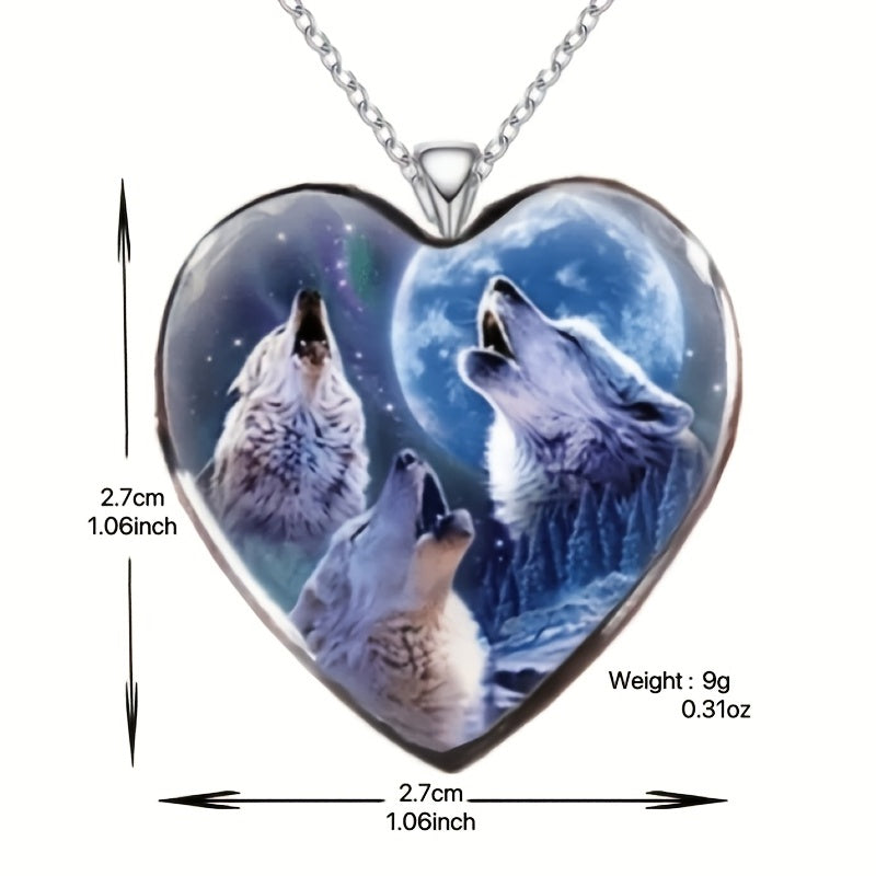 This pendant necklace features a creative heart shape design with a wolf motif, making it a stylish accessory for parties. It is a great gift for men, women, or friends.