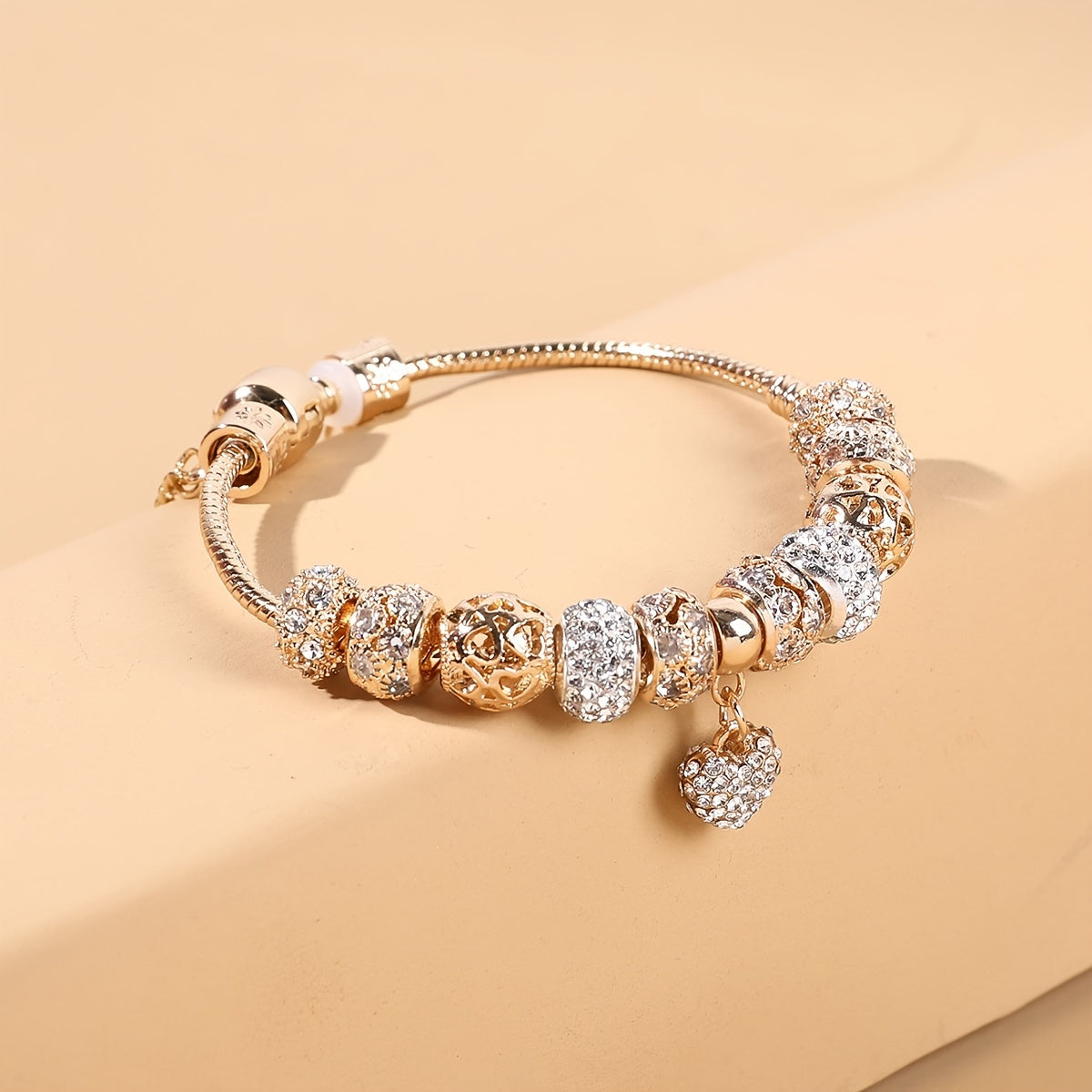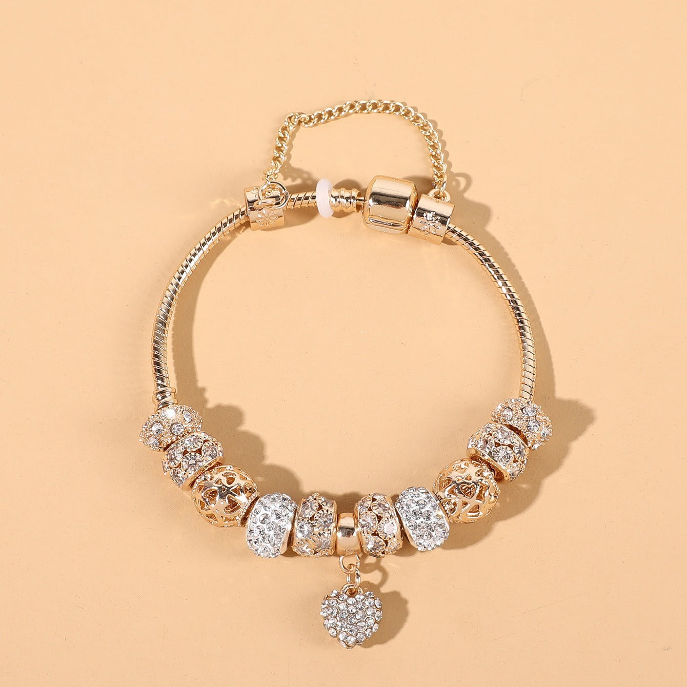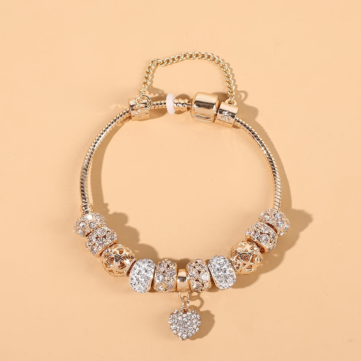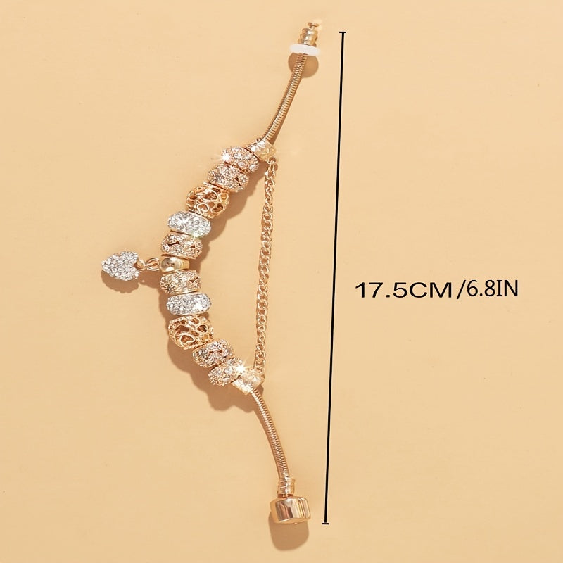 Elegant beaded bracelet featuring a full zircon heart shape pendant, perfect for women who love stylish accessories.