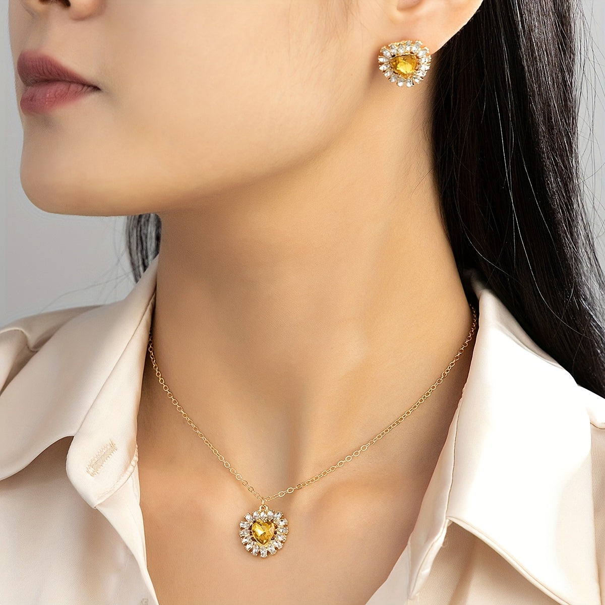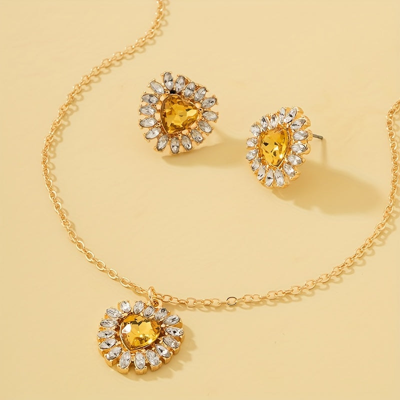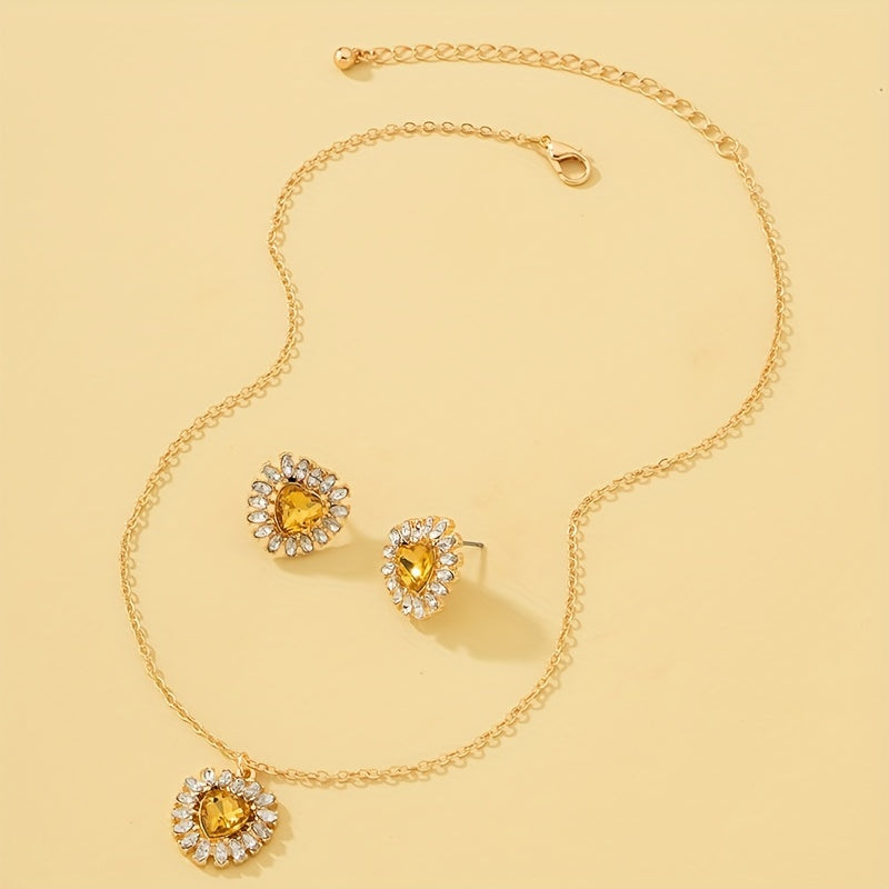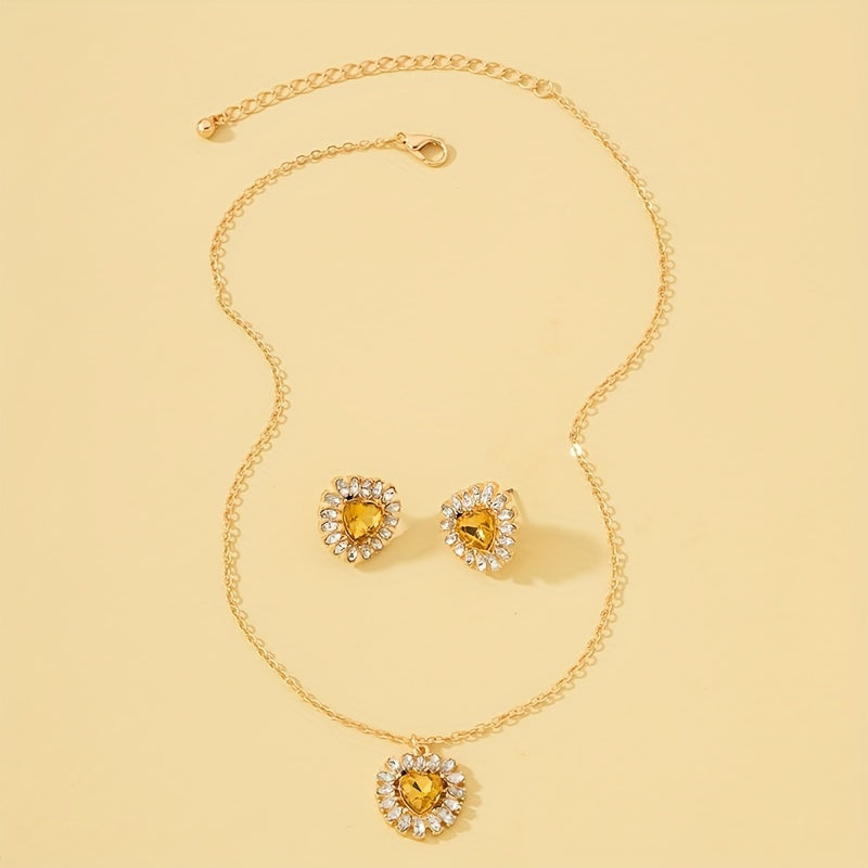 Complete your party look with this dainty jewelry set featuring heart-shaped zircon inlays. Perfect as a birthday or holiday gift for girls.
