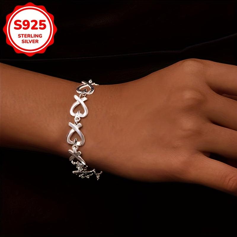 This beautiful heart-shaped bracelet is made of 925 silver weighing 6.5g. It is perfect for daily wear, couple's gift, or holiday accessory.