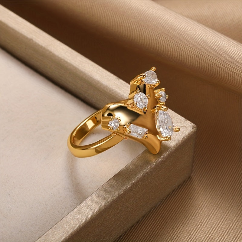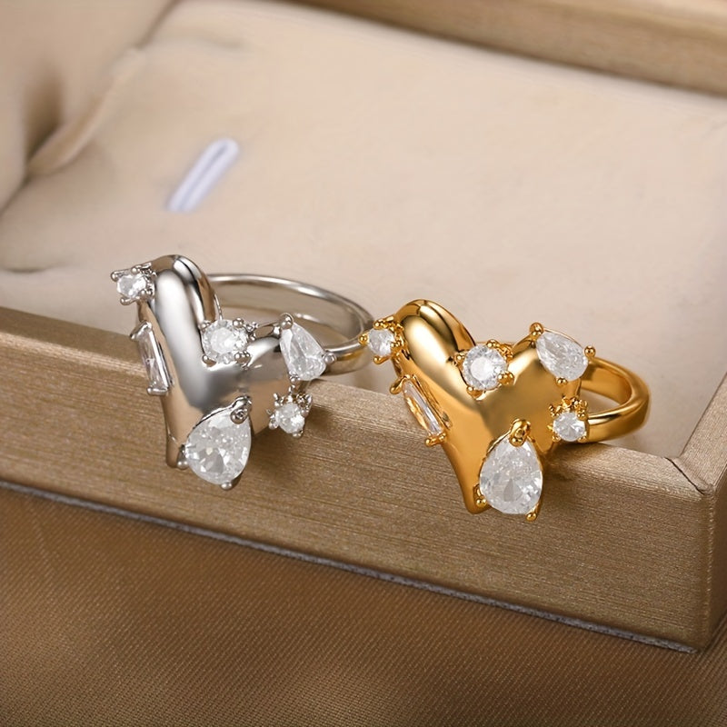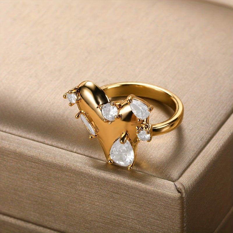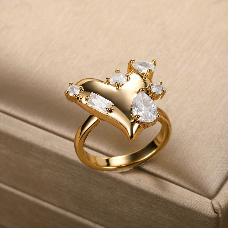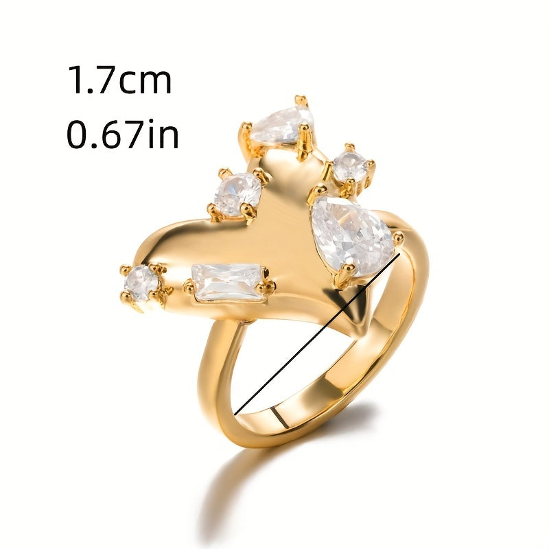 This vintage couple ring features a copper inlaid zircon in a heart-shaped design. Perfect for expressing your love and commitment.