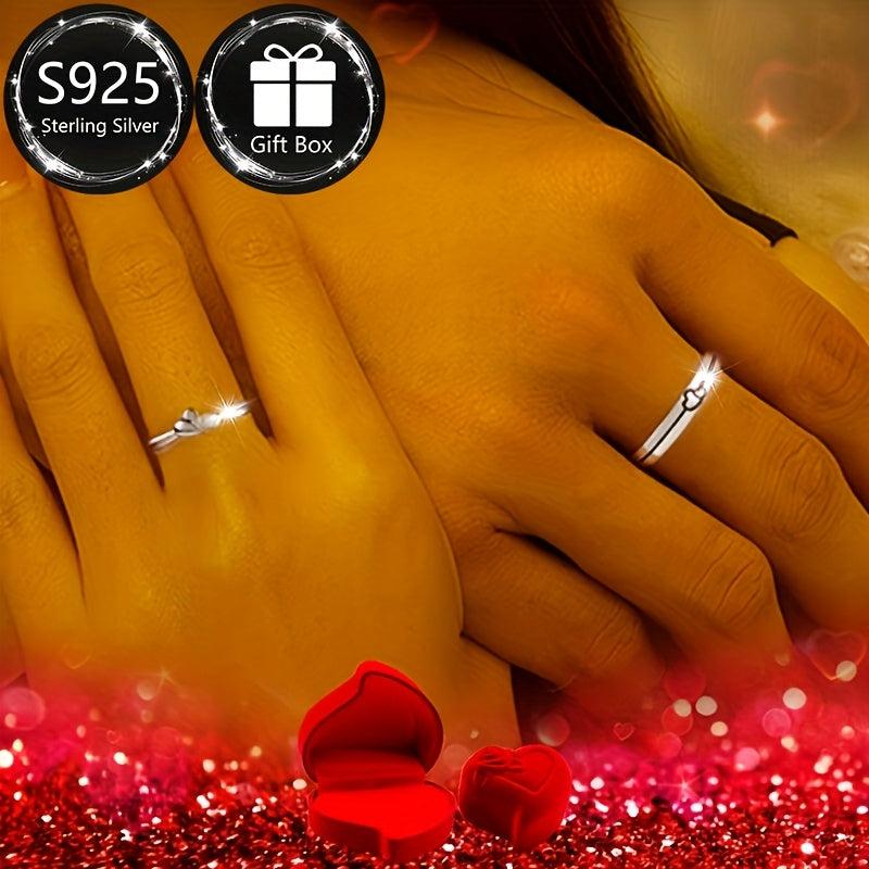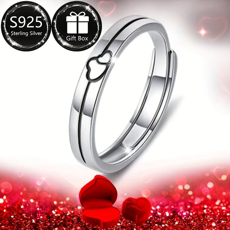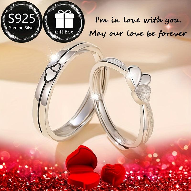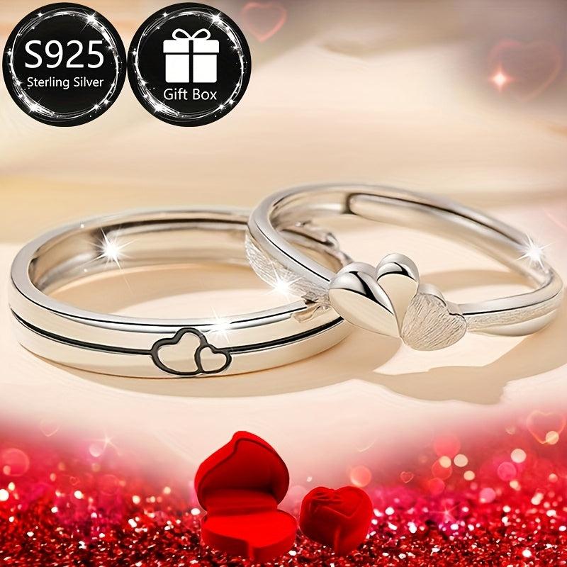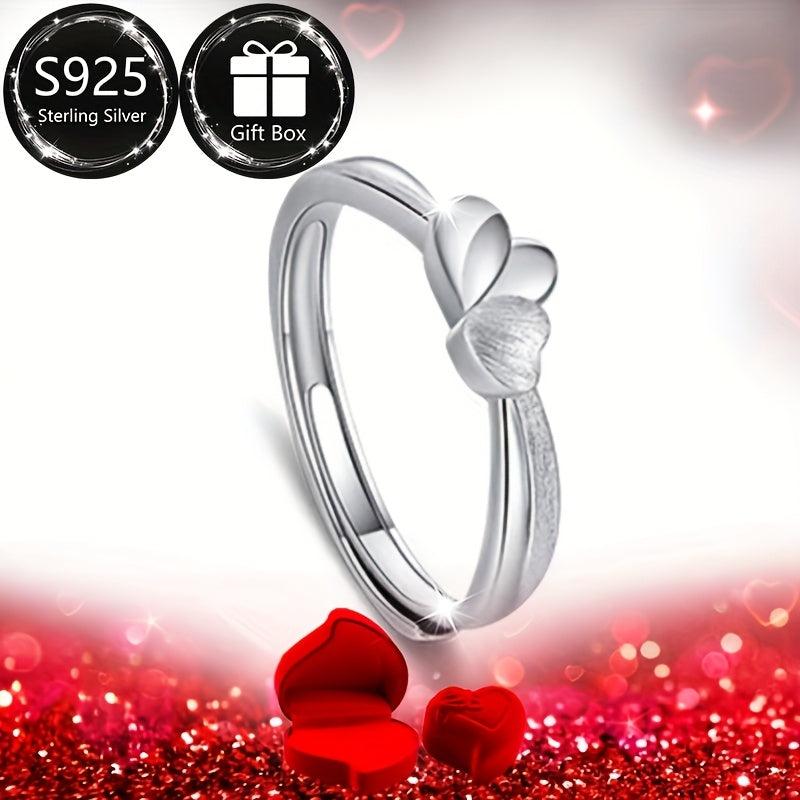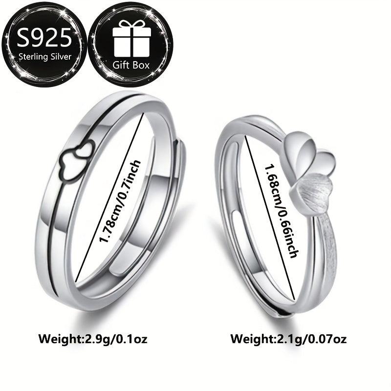 These women's engagement rings feature romantic heart shapes and are adjustable to fit all sizes. Made of 925 silver, packaged in a heart box, ideal for Valentine's Day gifting.