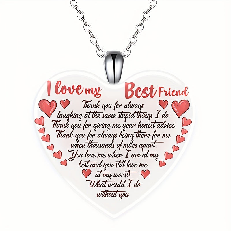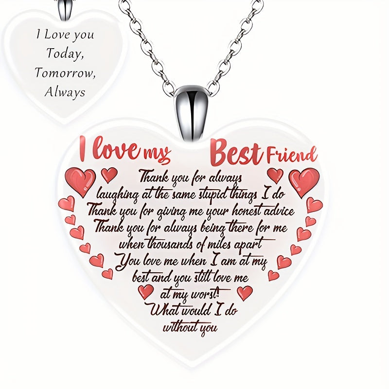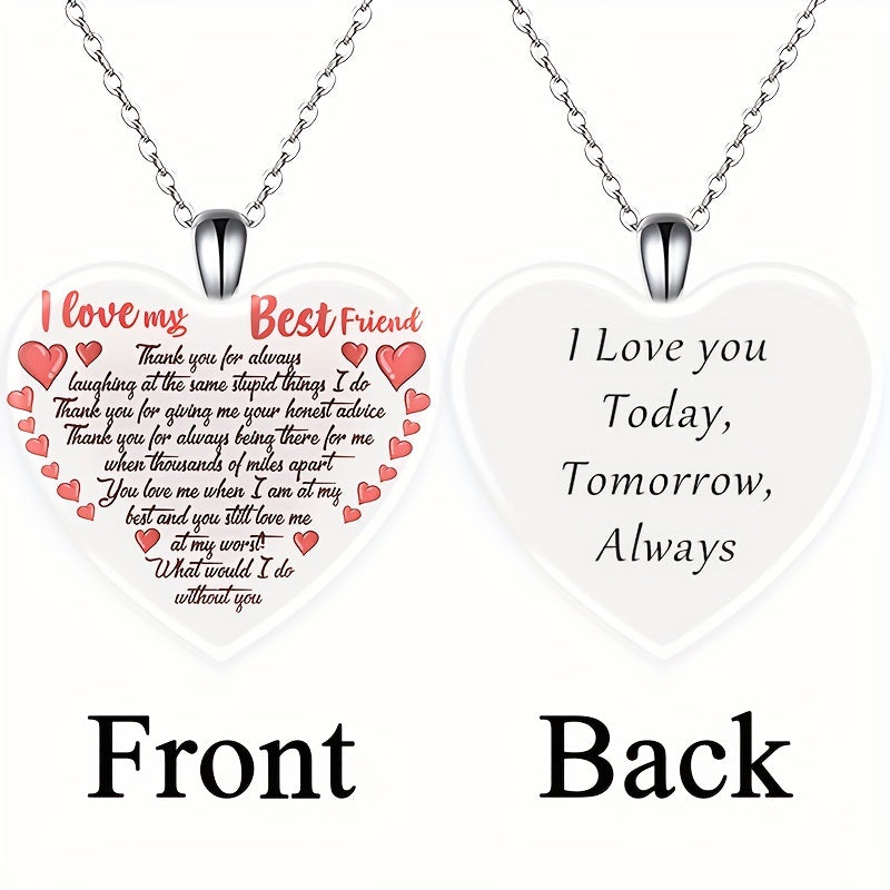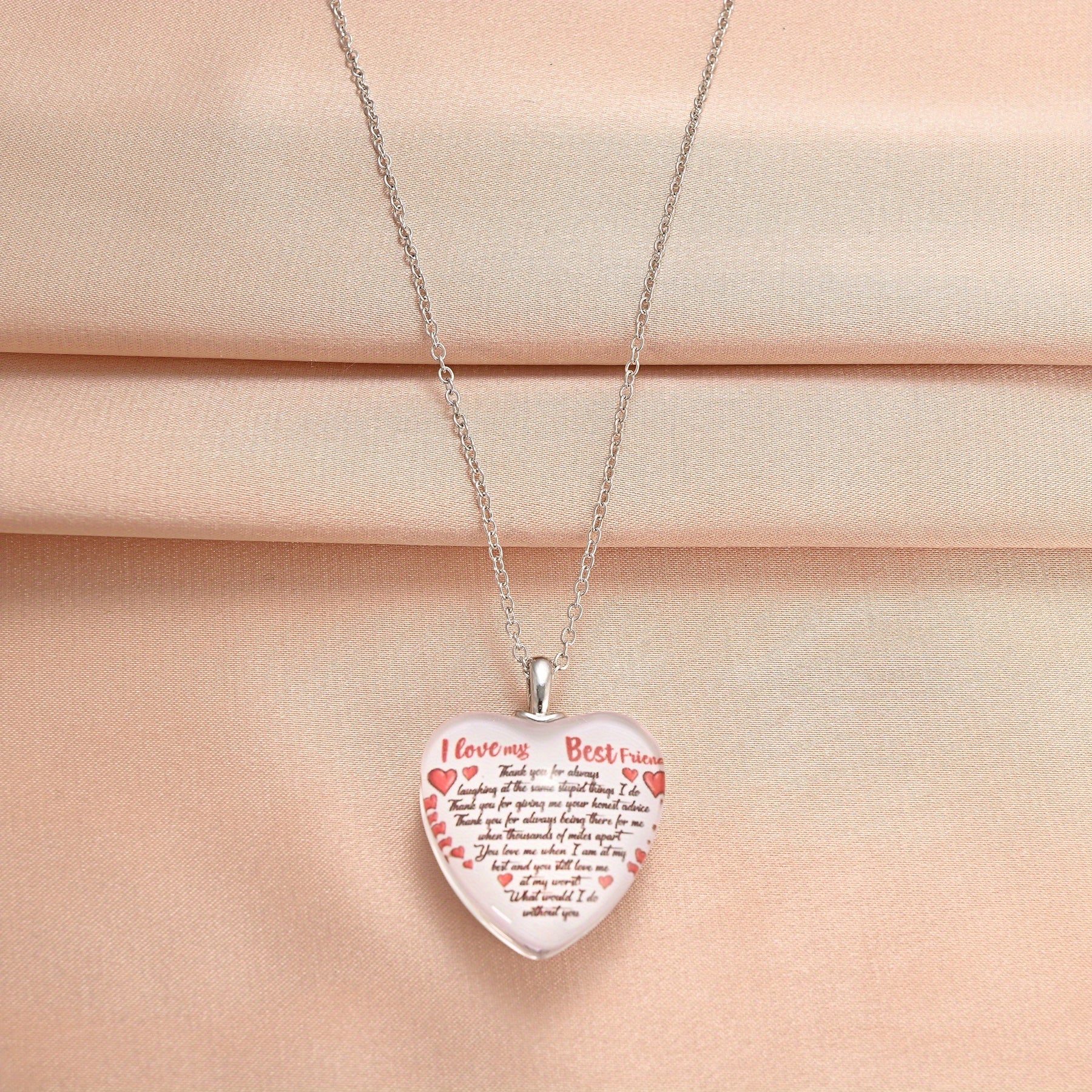 Sparkling heart shaped crystal pendant necklace perfect for BFFs. Great Christmas, holiday, party, or birthday gift.