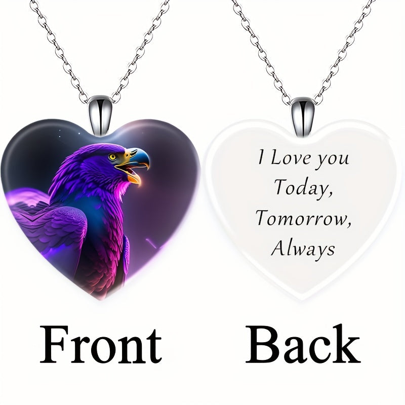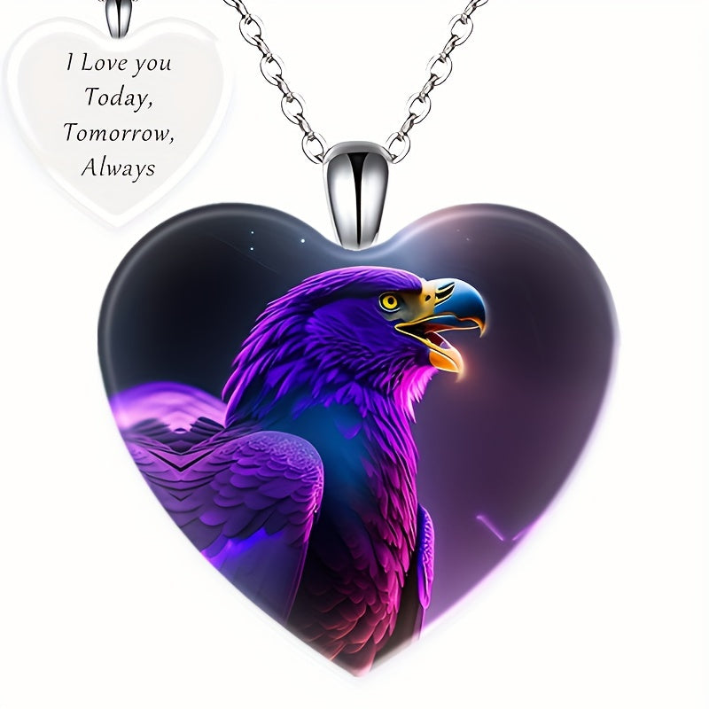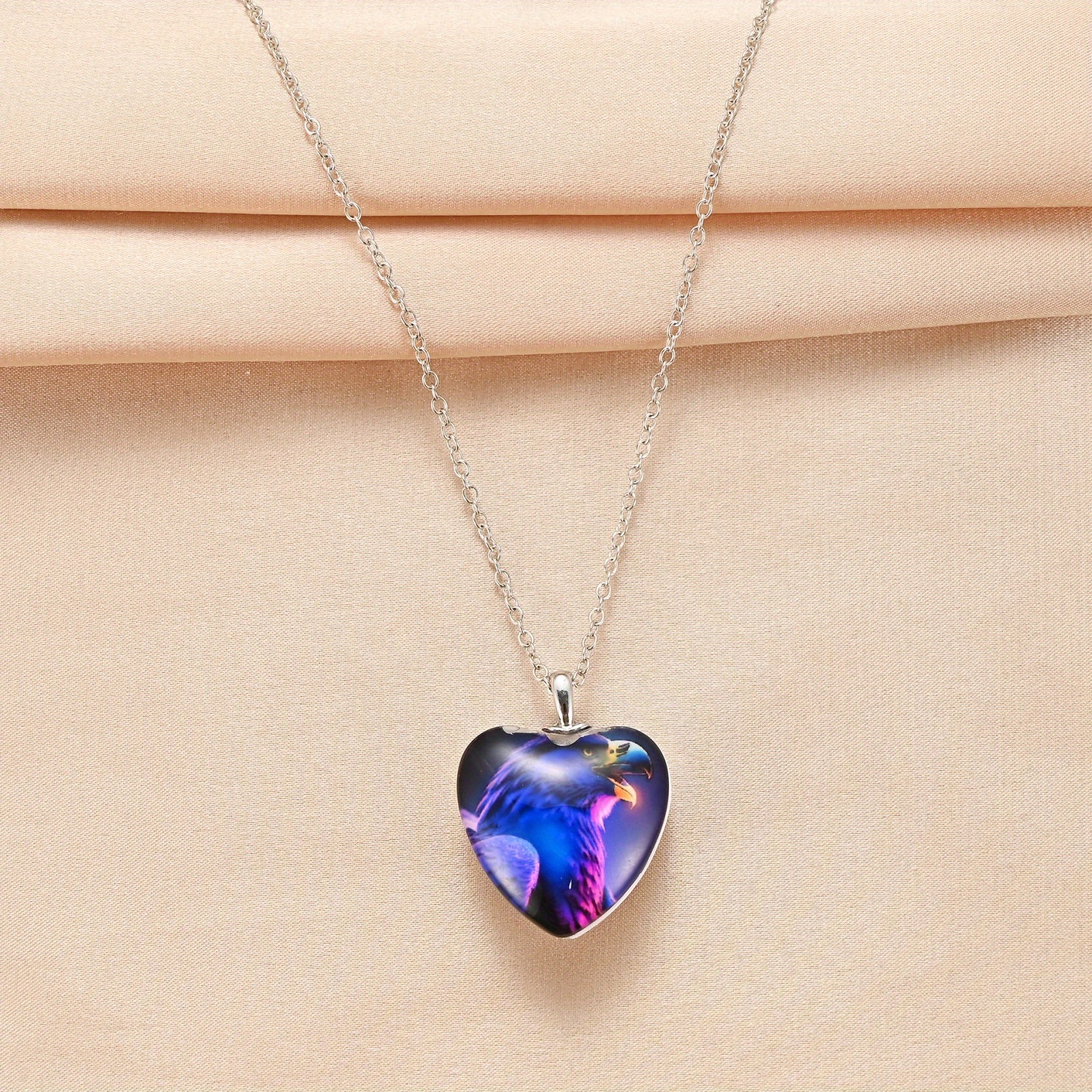 This stylish pendant necklace features a heart shaped crystal with eagle pattern, perfect for both men and women. Ideal gift for Thanksgiving, Christmas, or birthday.
