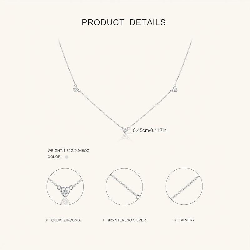 Elegant heart shaped CZ necklace made of durable 925 silver. Suitable for both casual and formal occasions.