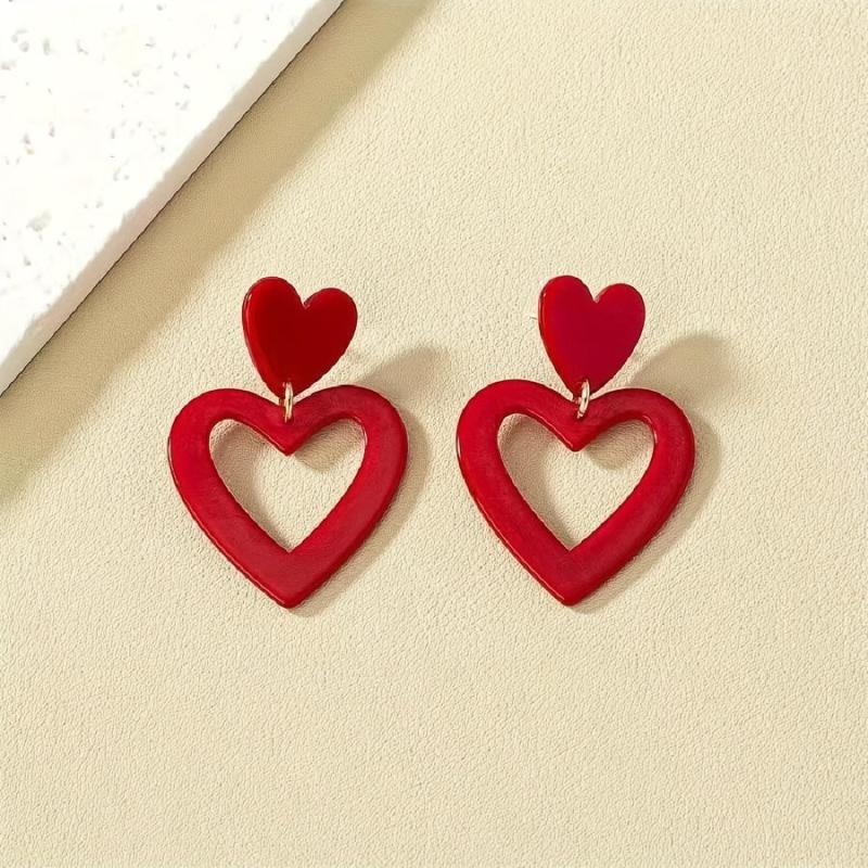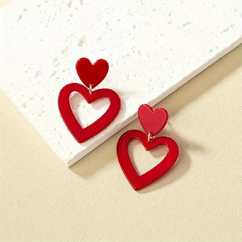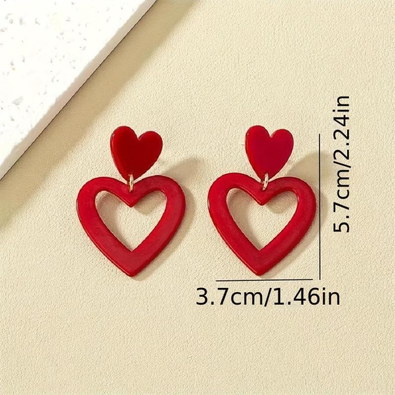 These red heart shaped earrings are made with stainless steel posts and plastic, making them versatile for daily wear. They are ideal gift options and perfect for adding a touch of love to any outfit.