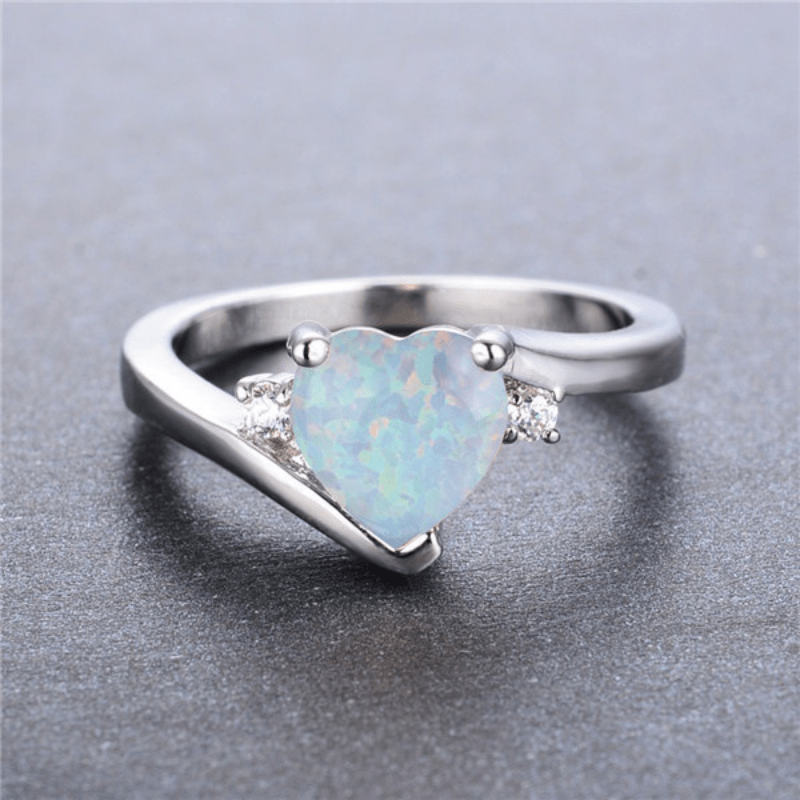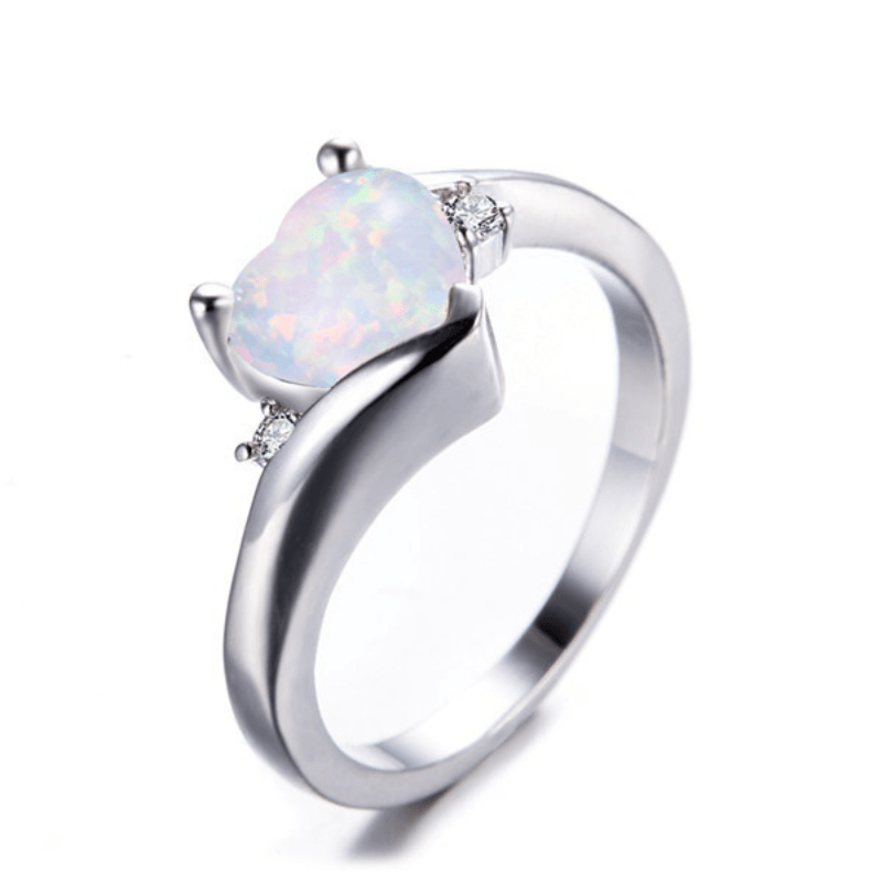 This unisex ring features a heart-shaped synthetic gemstone, making it perfect for weddings and engagements.