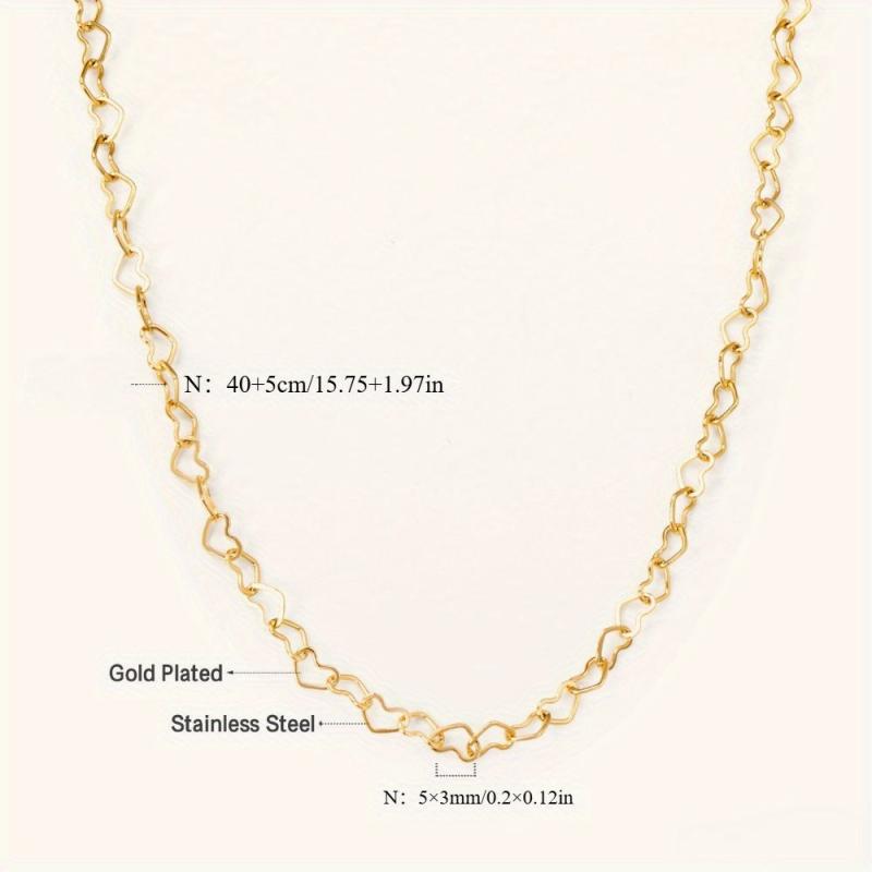 This minimalist heart shaped necklace is made of stainless steel with a golden tone finish, perfect for casual attire or as a gift for women.