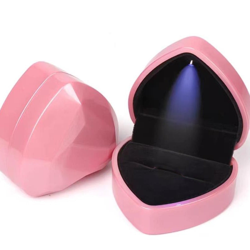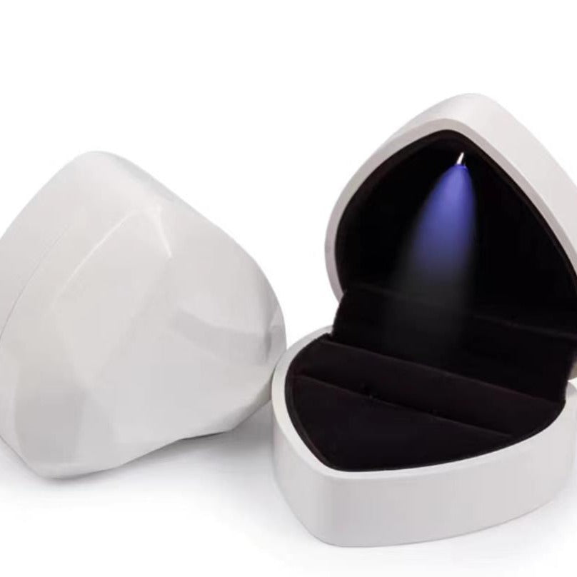 This heart-shaped ring box features a built-in LED light and comes in 6 color options. Perfect for adding a touch of romance to your proposal or gift-giving.