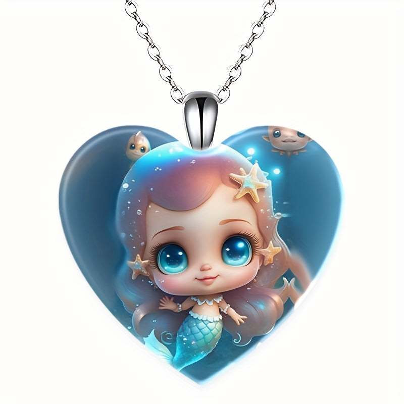 Add a touch of magic to your outfit with this stunning heart shaped mermaid pendant necklace. Perfect for parties, special events, or everyday wear.