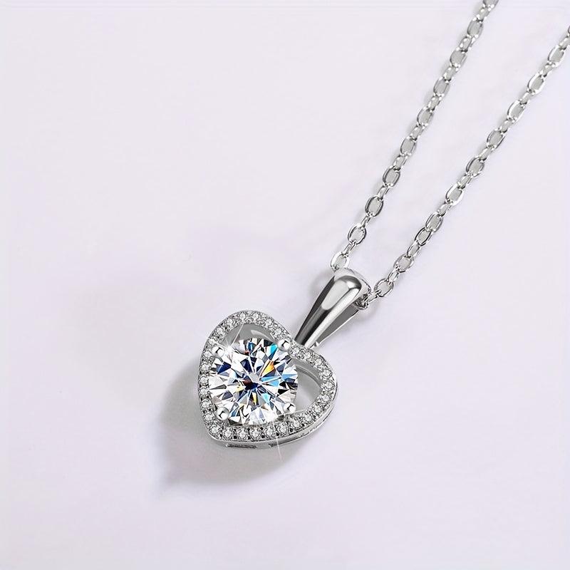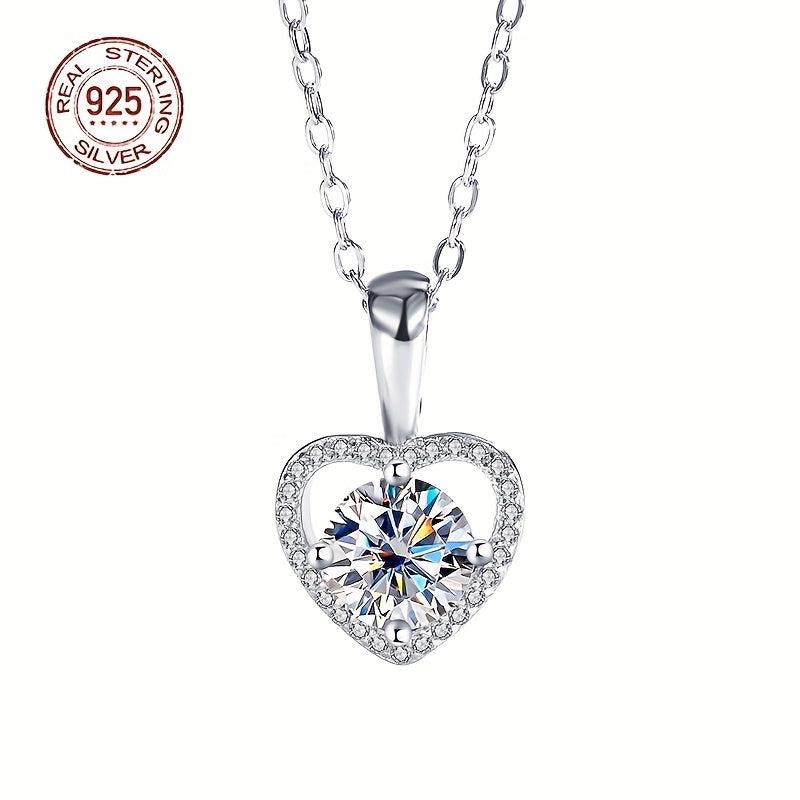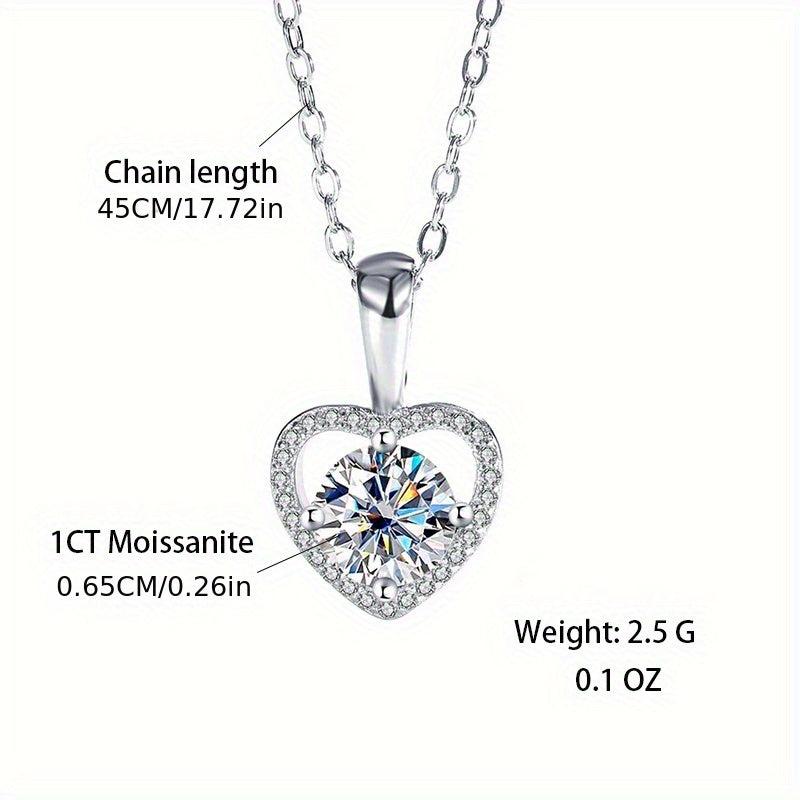 Express your love with this beautiful heart-shaped Moissanite necklace. Crafted in 925 sterling silver, this pendant is perfect for your girlfriend or mother. Weighs only 2.5g.