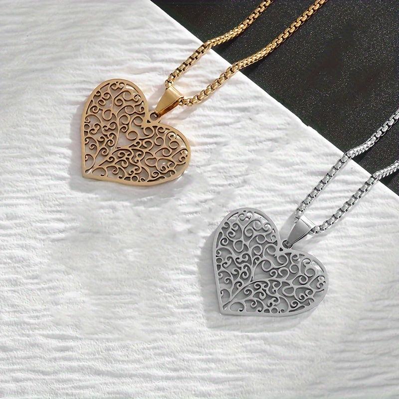 This romantic heart-shaped pendant necklace is made of stainless steel with a stylish and versatile design. It can be worn as a lucky amulet jewelry gift for women.