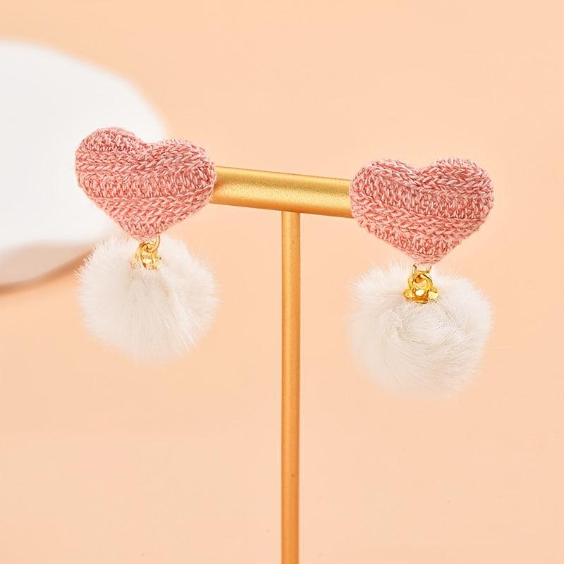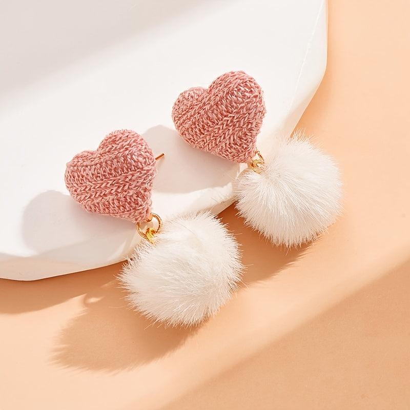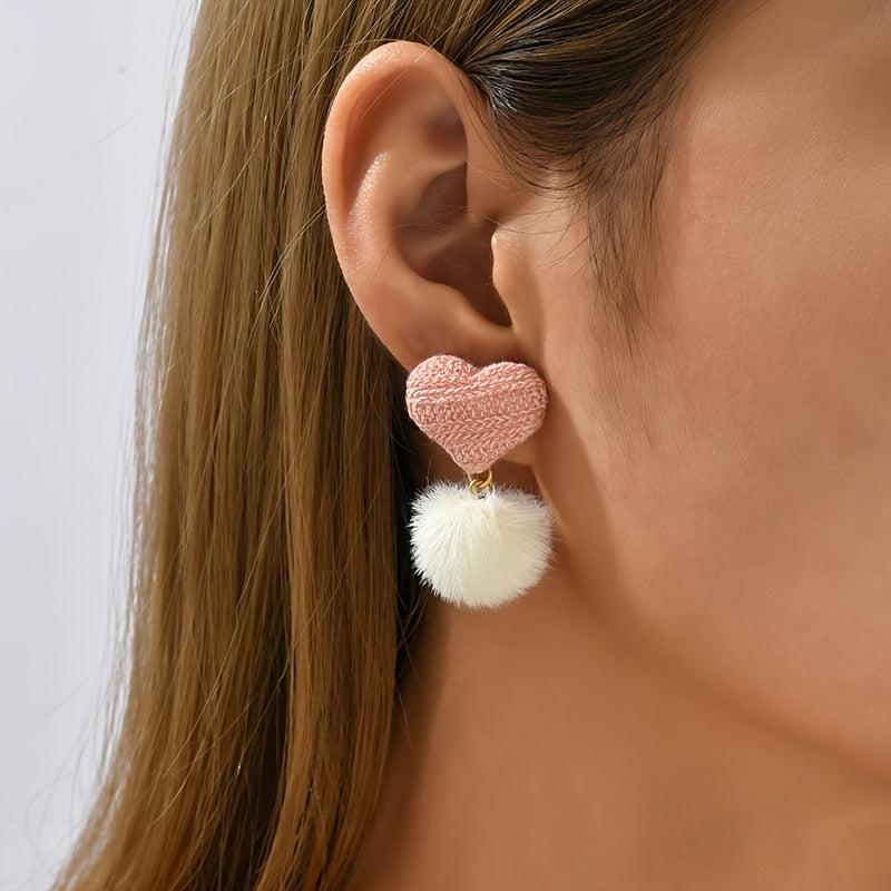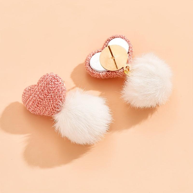 These cute heart shaped earrings feature a soft pink textured design with fluffy pom poms for a fun and versatile accessory that is perfect for daily wear and parties all season long. Made with stainless steel posts for durability.