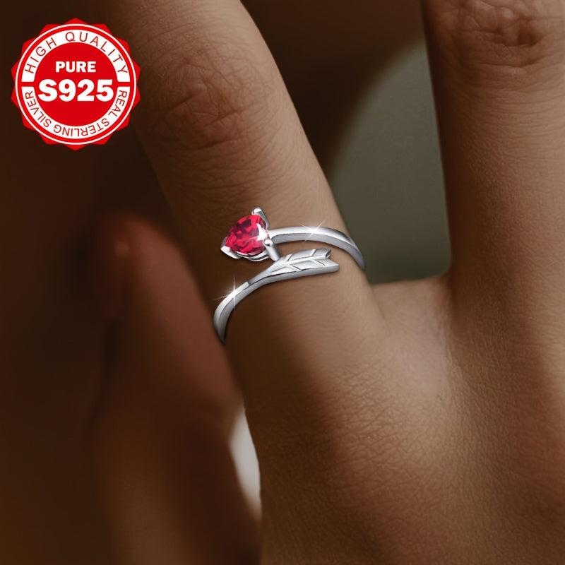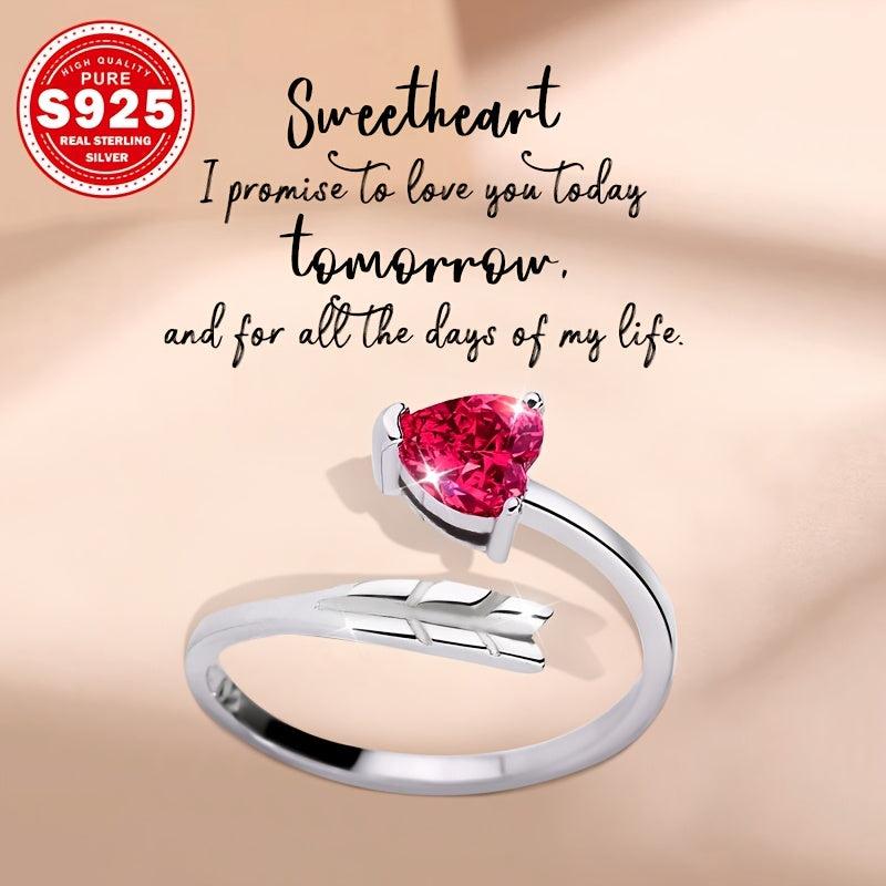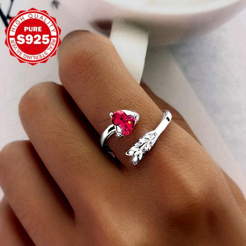 Express your love and commitment with this unique red zirconia ring featuring Cupid's arrow on sterling silver.