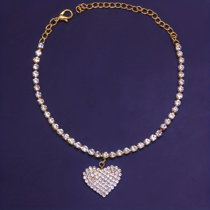 Add a touch of personality with this heart-shaped anklet featuring a dazzling diamond pendant. Perfect for adding some glam to your look.