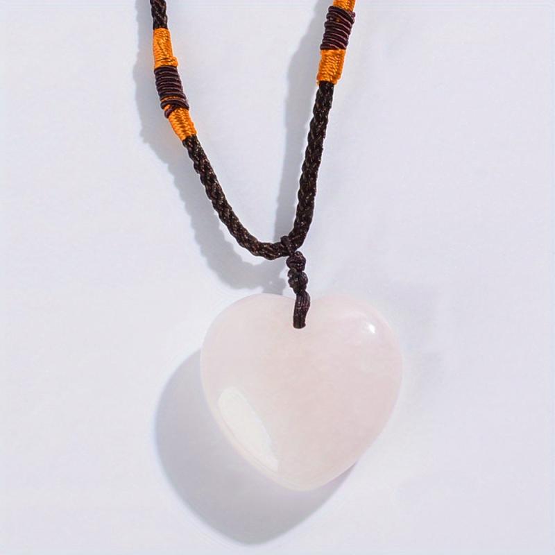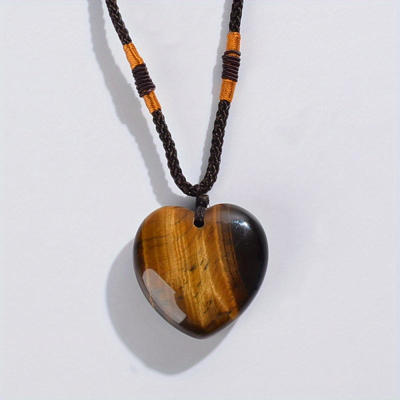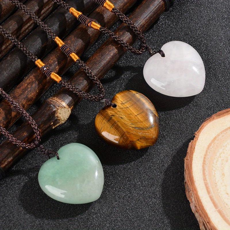 This unisex boho amulet jewelry features a heart-shaped natural stone pendant on a hand-woven rope. Choose from serene forest green or stone options for a unique look.