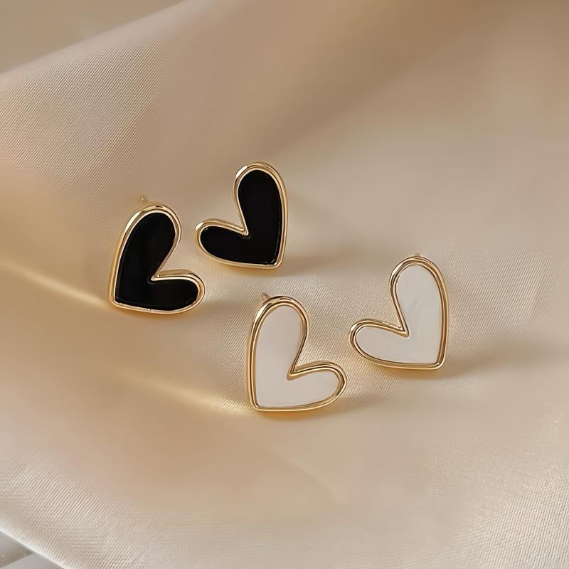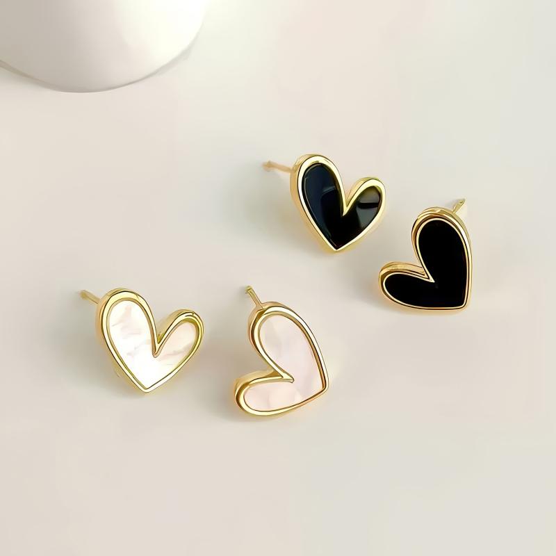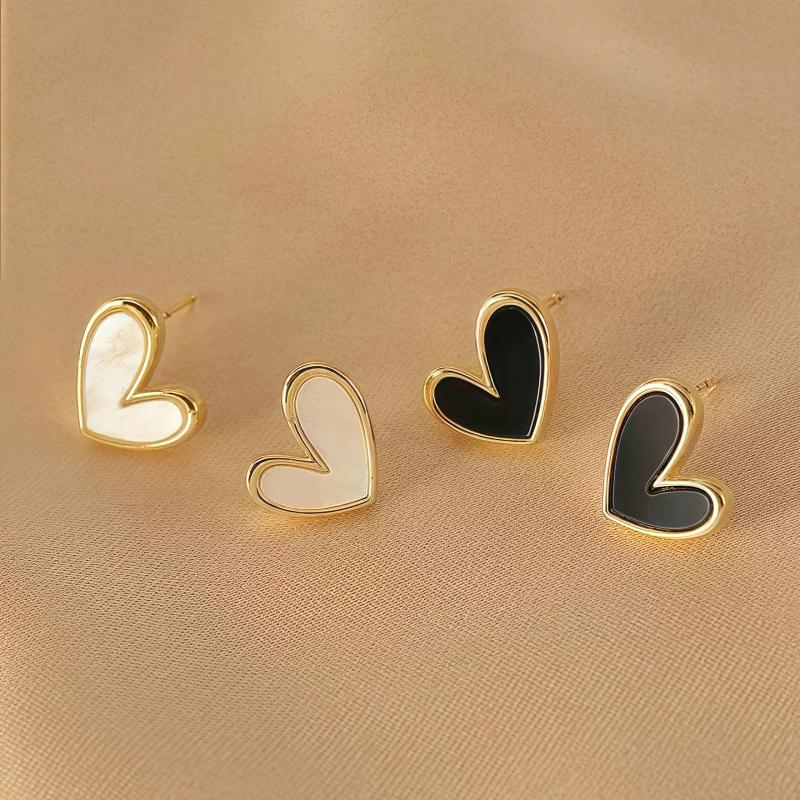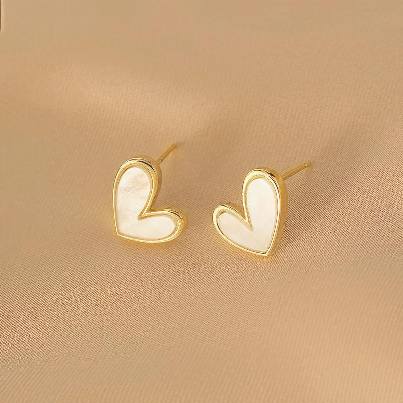 Stay stylish with these golden heart shaped stud earrings made of hypoallergenic stainless steel. They are anti-fade, comfortable, versatile, and fashionable.