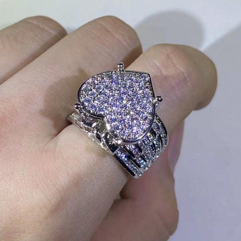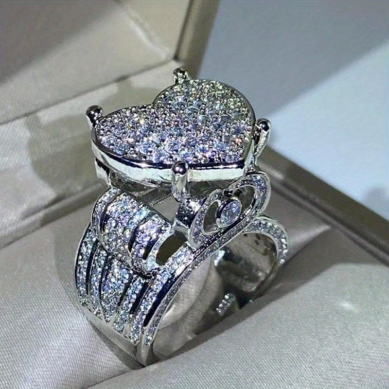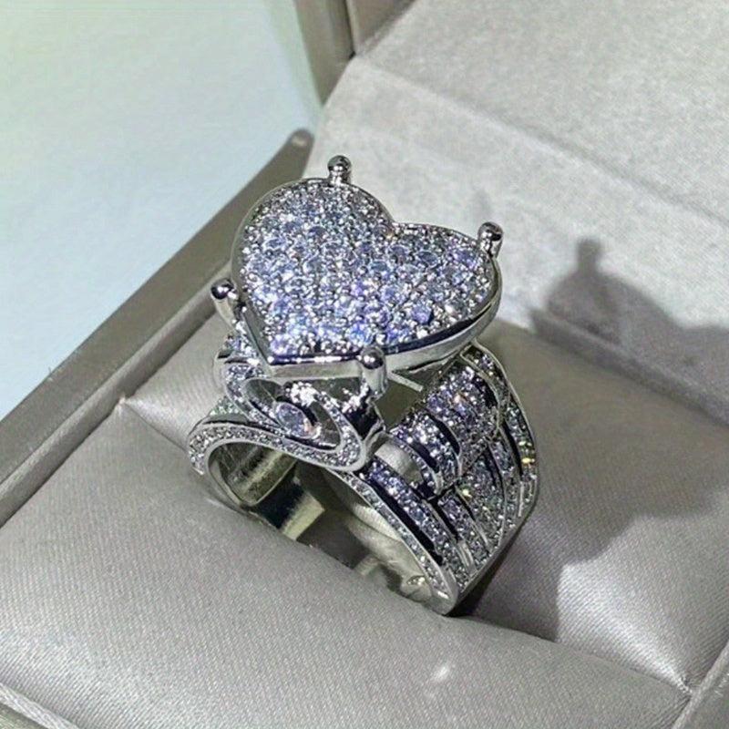 Sparkling synthetic cubic zirconia heart shaped wedding ring that is perfect for holidays, daily wear, and special occasions. Great for a Valentine's gift idea.