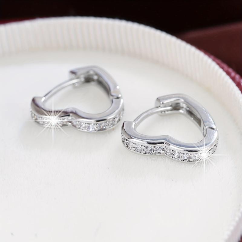 These heart shaped leverback earrings feature inlaid zirconia, making them a versatile and stylish choice for women.