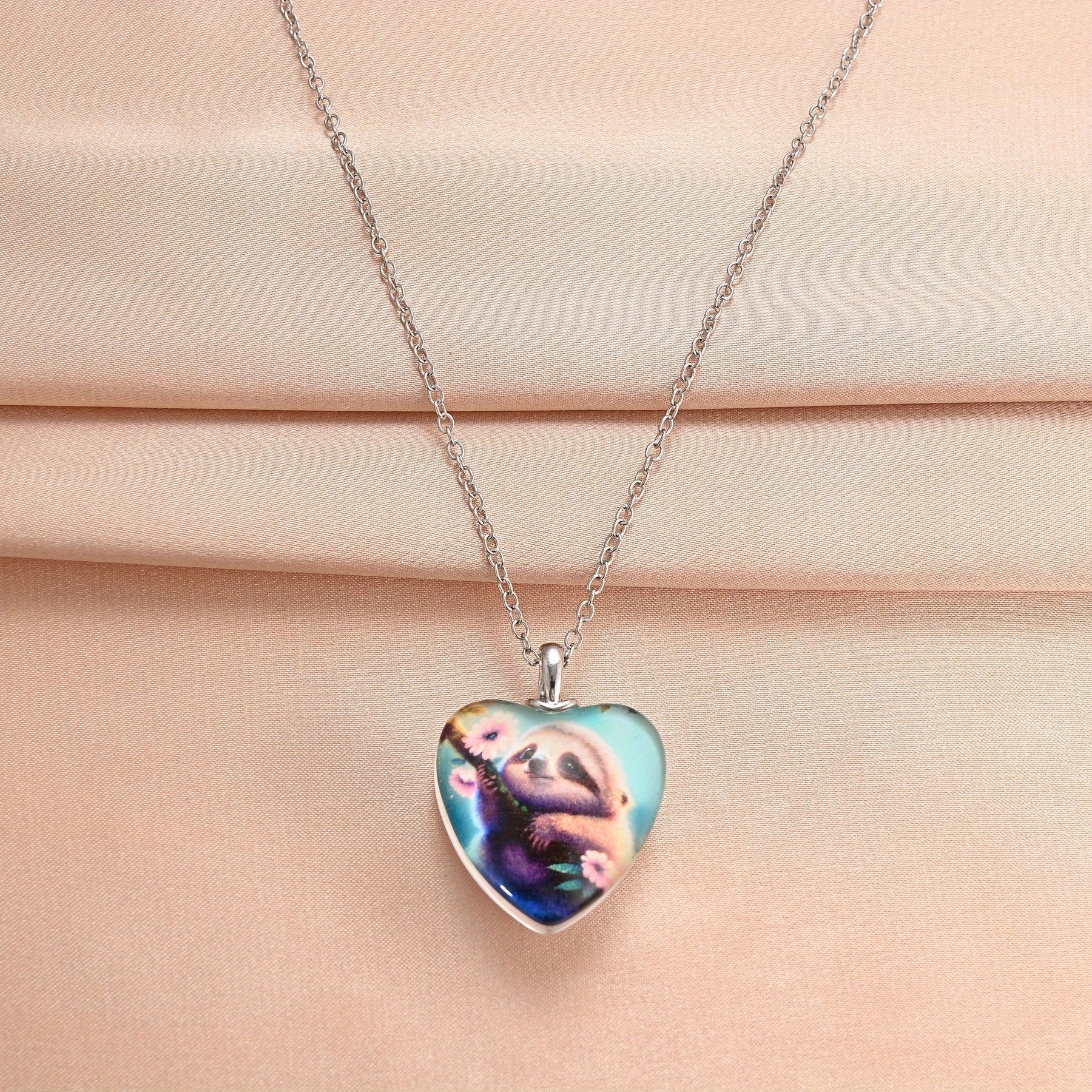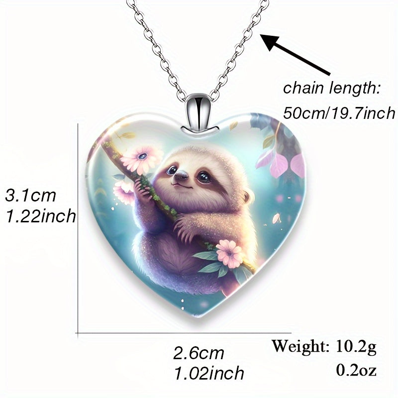 Adorn yourself with this charming heart-shaped sloth pattern crystal pendant necklace. Perfect for holiday parties, weddings, anniversaries, and birthdays.