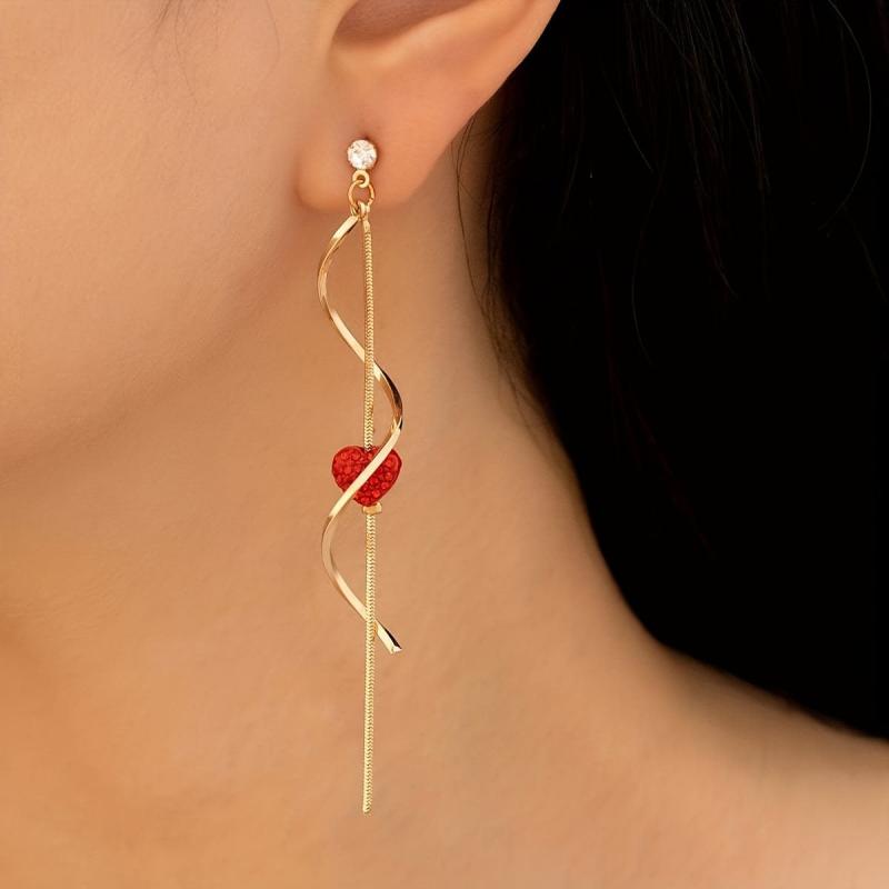 Add a touch of sparkle to your outfits with these heart spiral dangle earrings featuring rhinestone accents. Ideal for daily wear, parties, and Valentine's Day.
