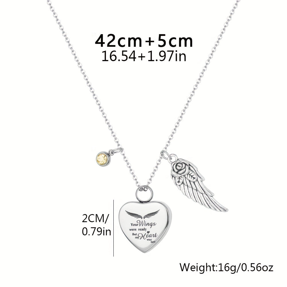 This stunning necklace features a heart and wing shape design with inlaid rhinestones. Perfect for adding a touch of elegance to any outfit.