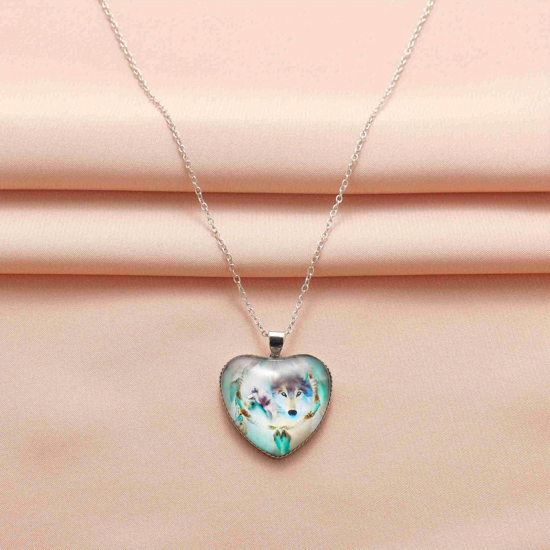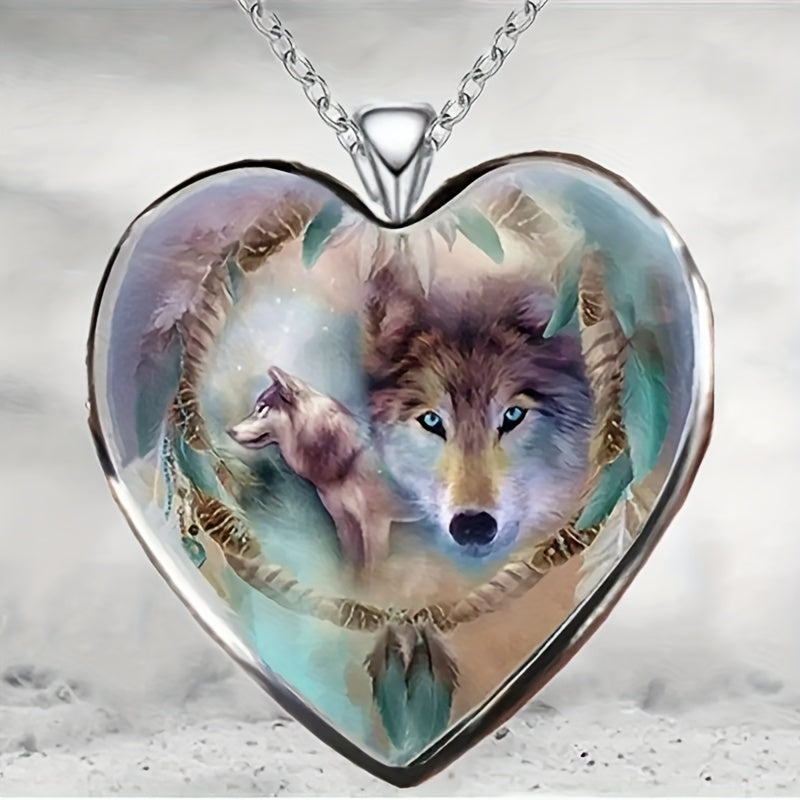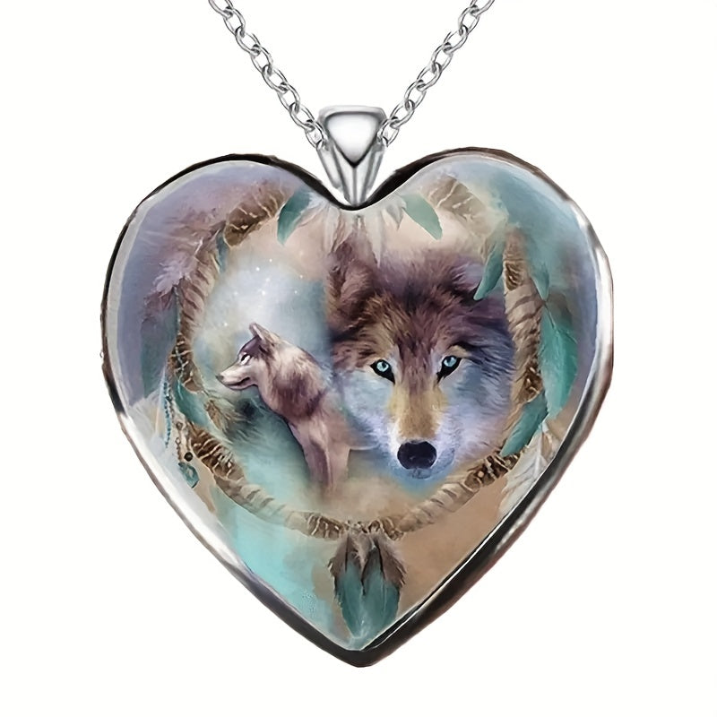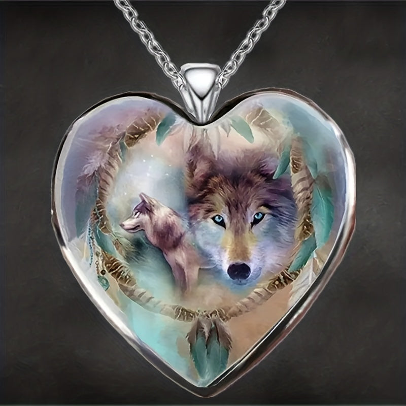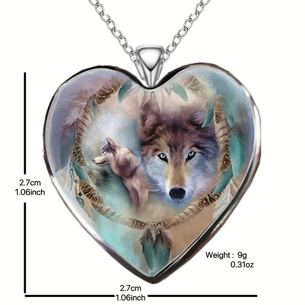 This zinc alloy necklace features a creative heart wolf design, making it a perfect accessory for parties. It's a great gift for men, women, or friends.