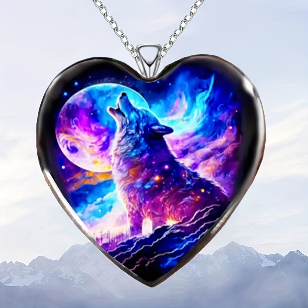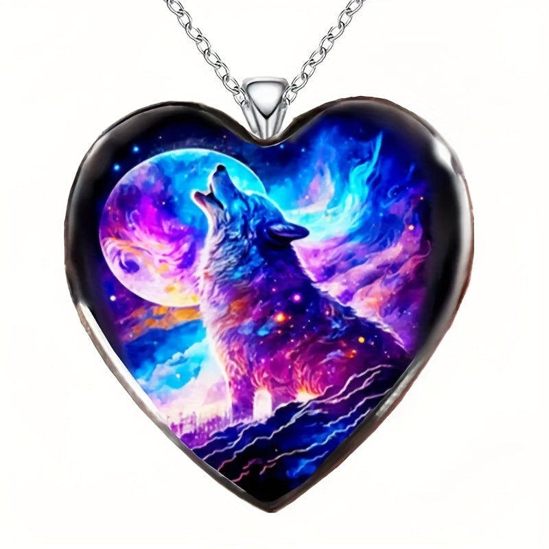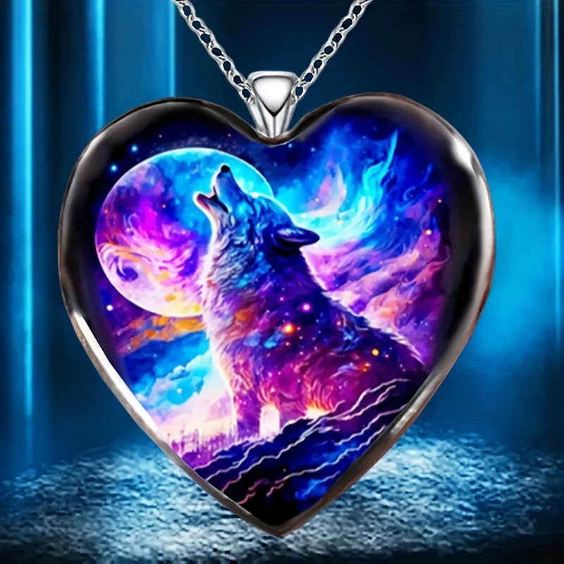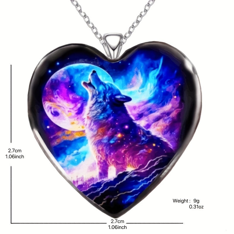 Heart Wolf Pendant Necklace Men's Jewelry Gift