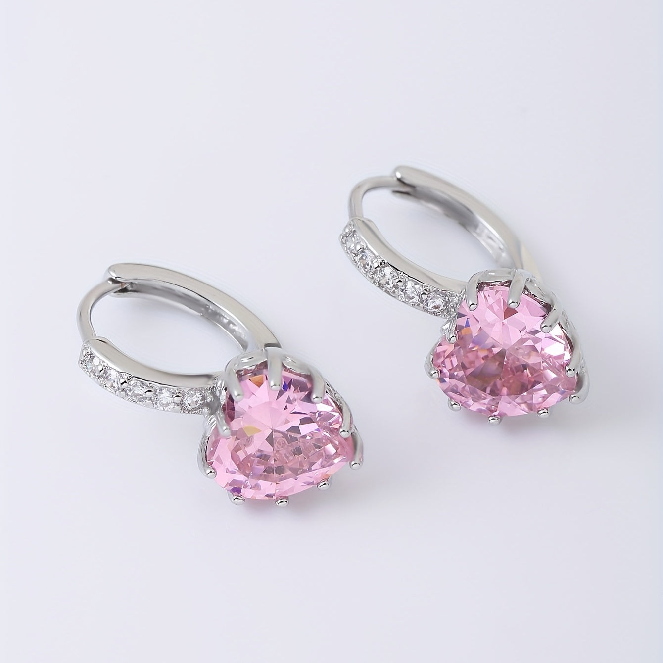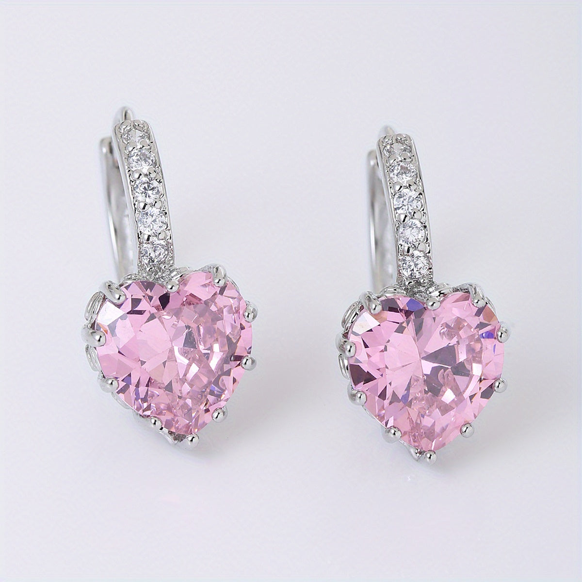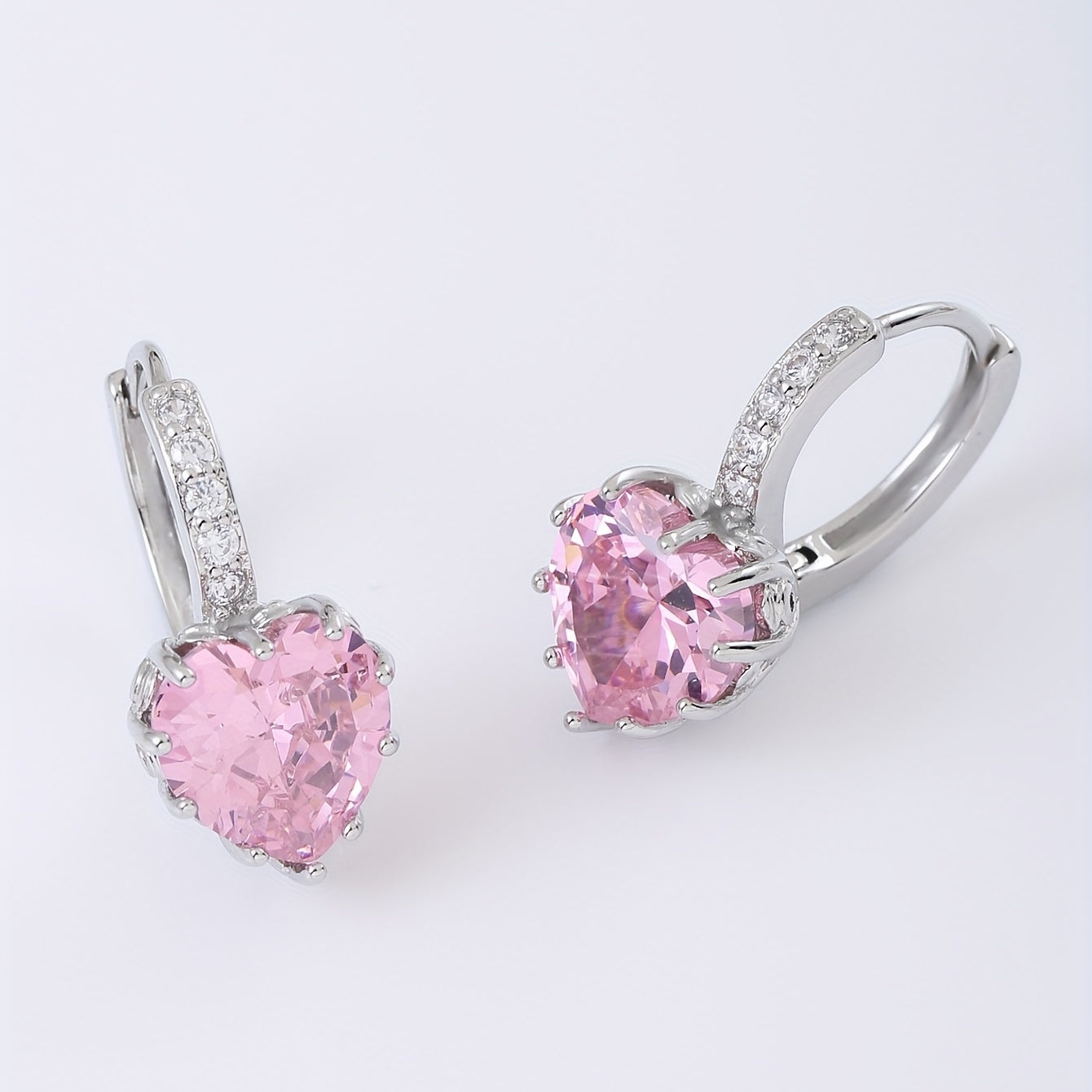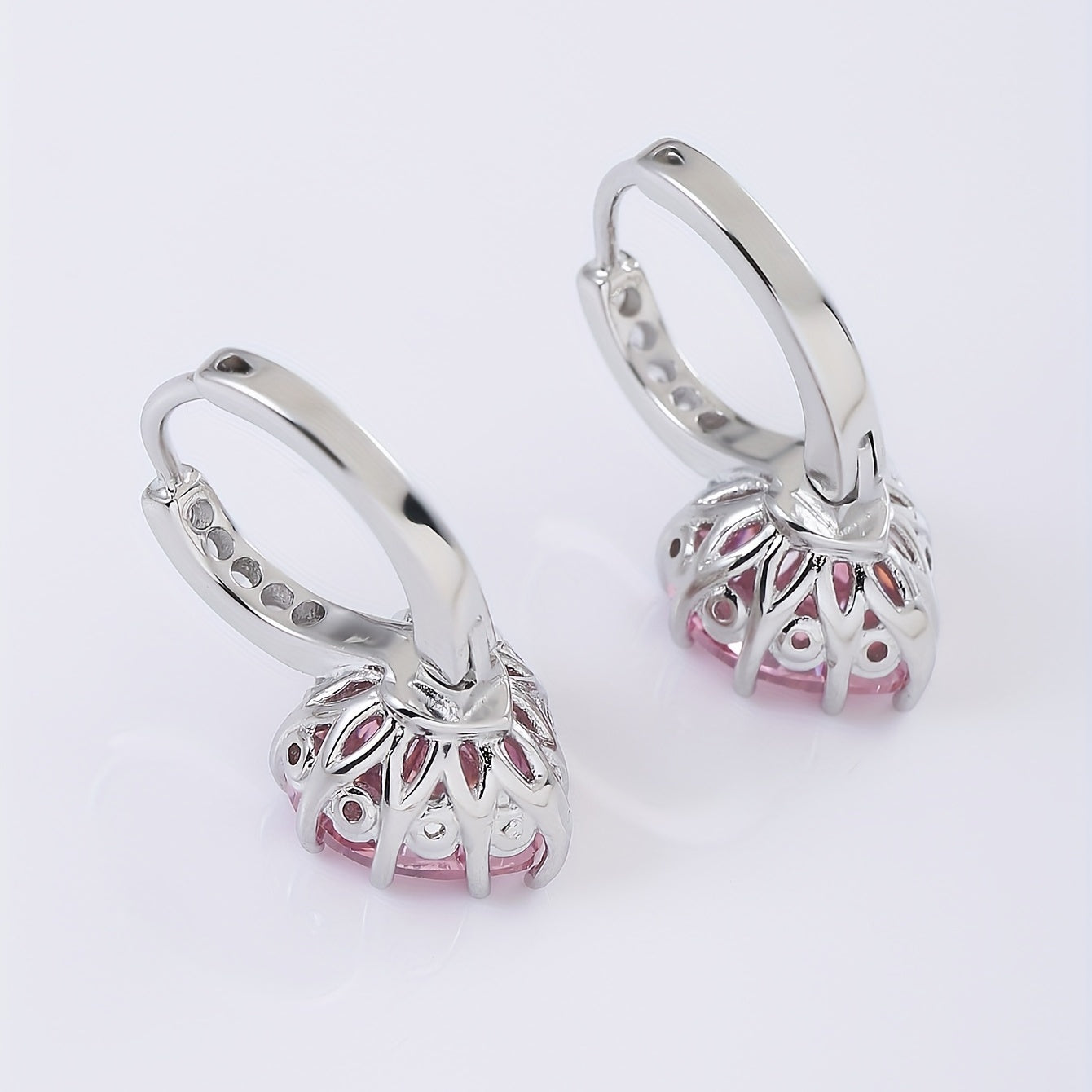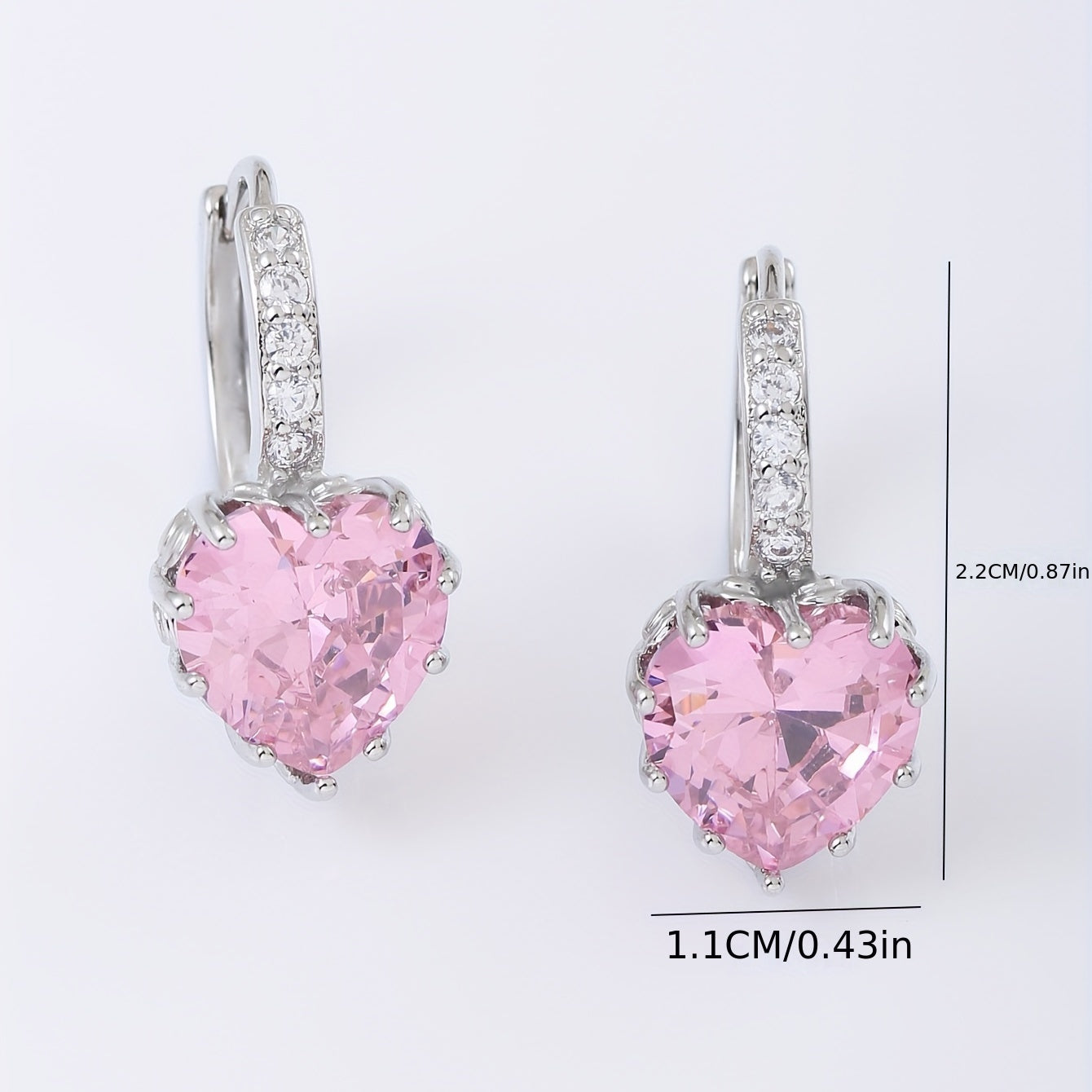 These stylish hoop earrings feature pink heart zircon decorations. They are made of copper with a silver plated finish, perfect for a gothic look. Ideal gift for females.