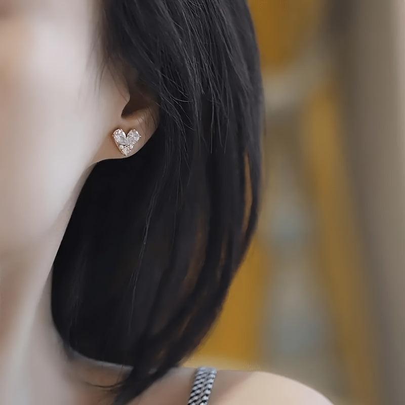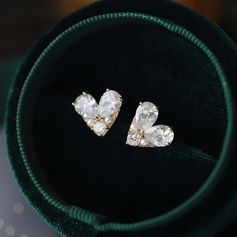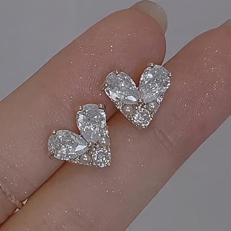 Elegant heart-shaped zirconia earrings that are perfect for adding a touch of sparkle to any outfit. Ideal for special occasions or everyday casual wear.
