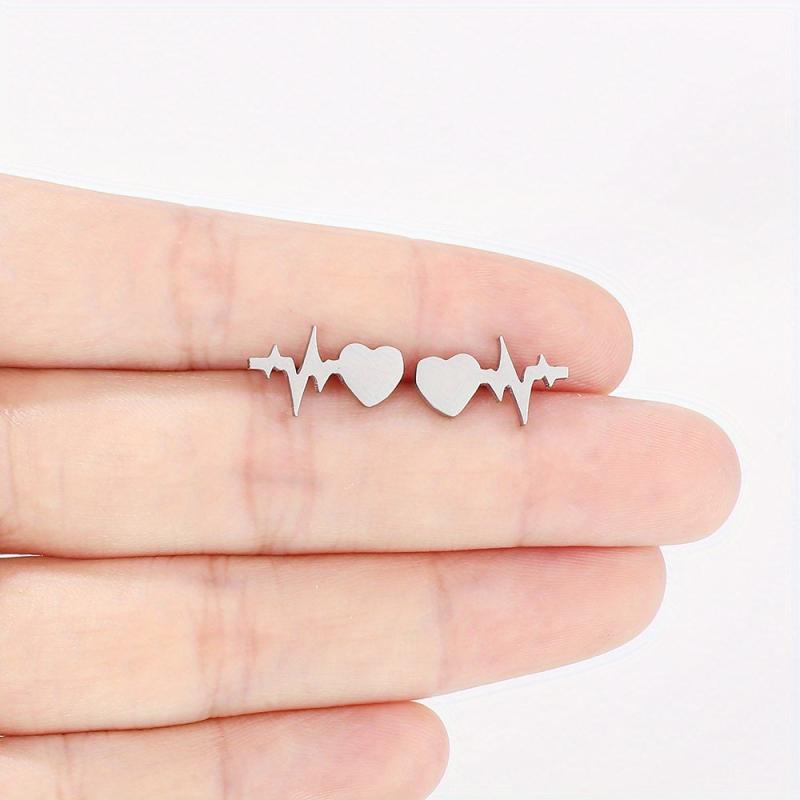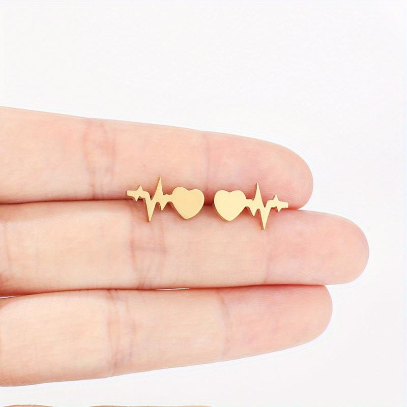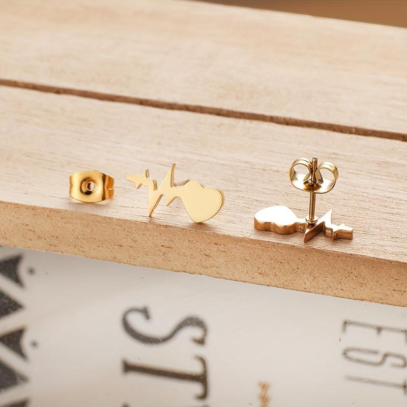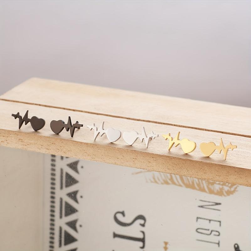 These Heartbeat Stainless Steel Earrings come in 3 color options and are plated with 18k gold. Add a creative touch to your accessories with these stud earrings.