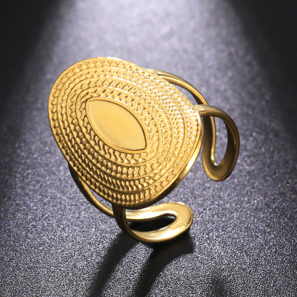 This hemp pattern oval ring is a stylish accessory for men, made of durable stainless steel. It's adjustable and perfect for parties or birthdays.