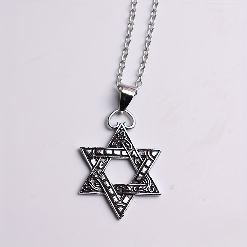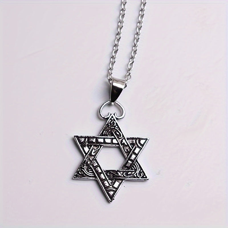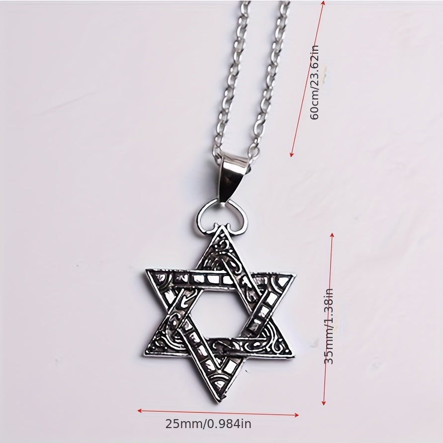 This necklace features a die cast hexagon star pendant, making it a stylish accessory for men.