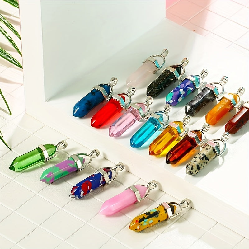 This bag contains a 1.57in long hexagonal prism double pointed yoga stone, perfect for ornaments, accessories, and pendants.