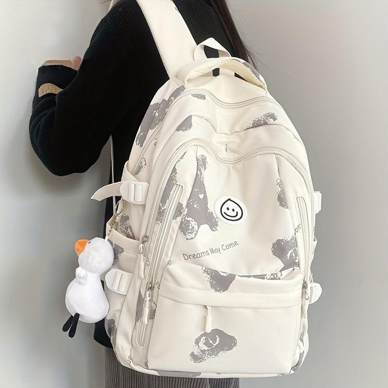 This versatile college style schoolbag is designed for female junior high school students. It offers high capacity and functionality.