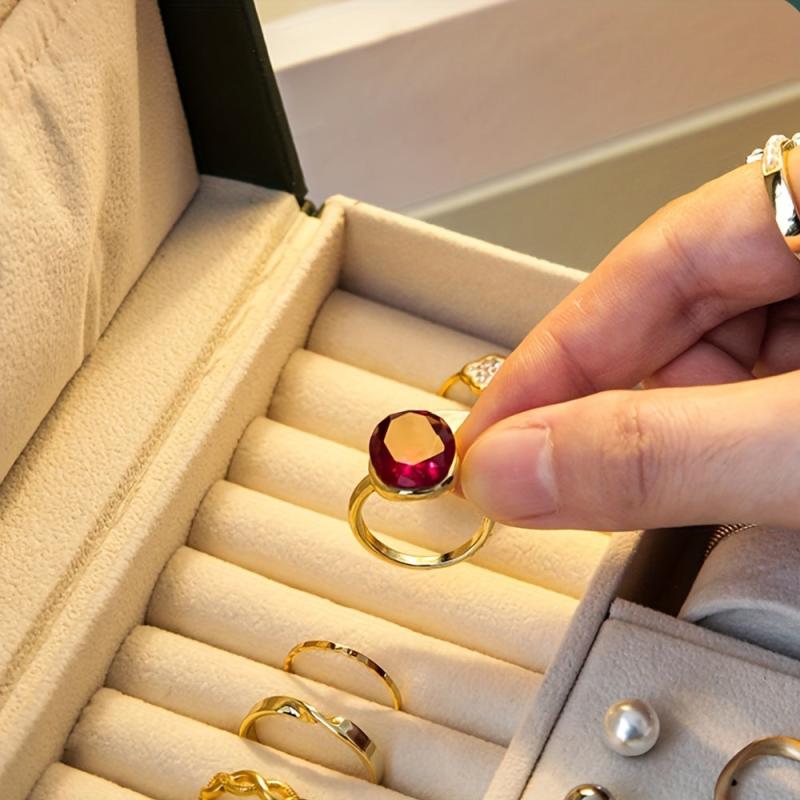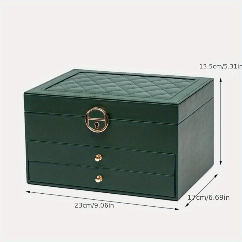Keep your precious jewelry organized and secure with this high-end storage box. It features multiple compartments for necklaces, earrings, and gemstones, all neatly stored in a stylish leather box.