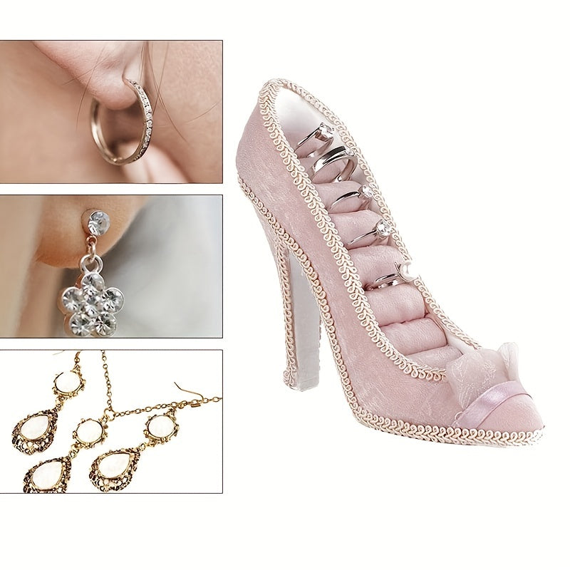 This creative high heels storage rack is perfect for organizing and displaying your stud earrings and rings in style.