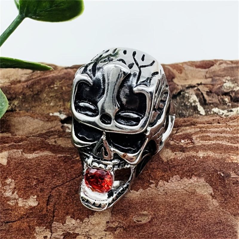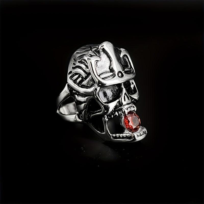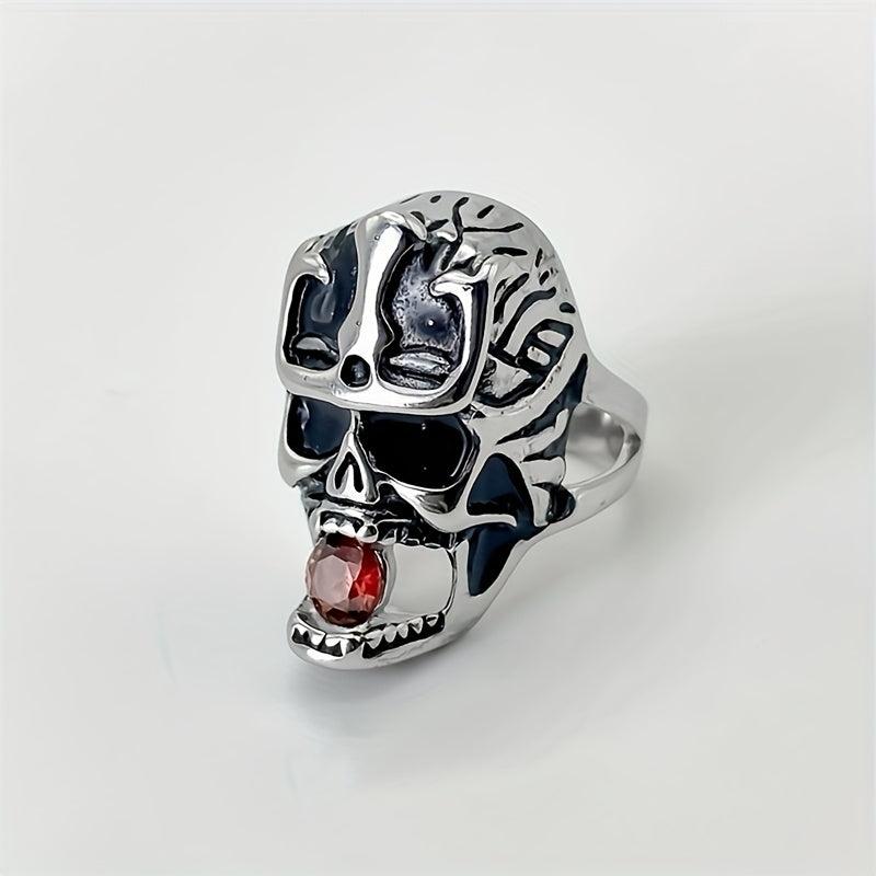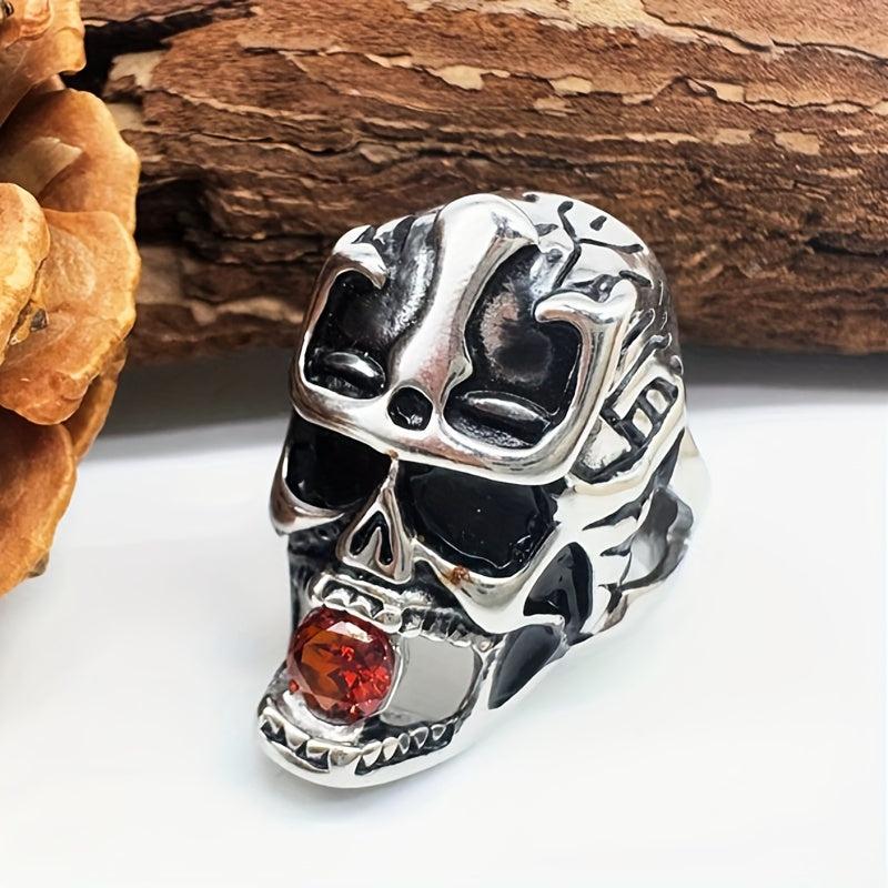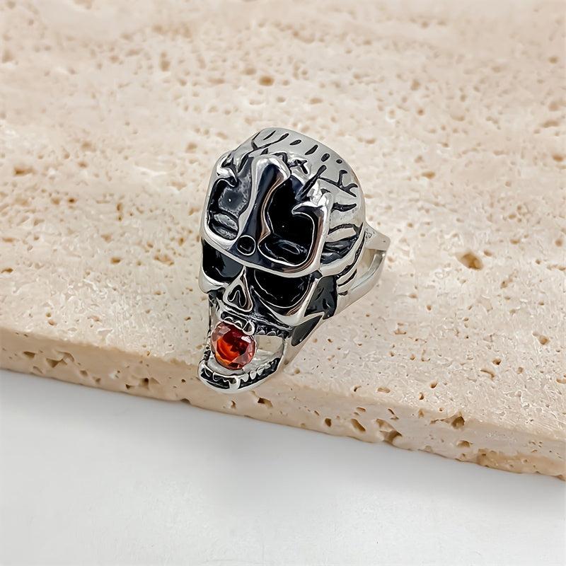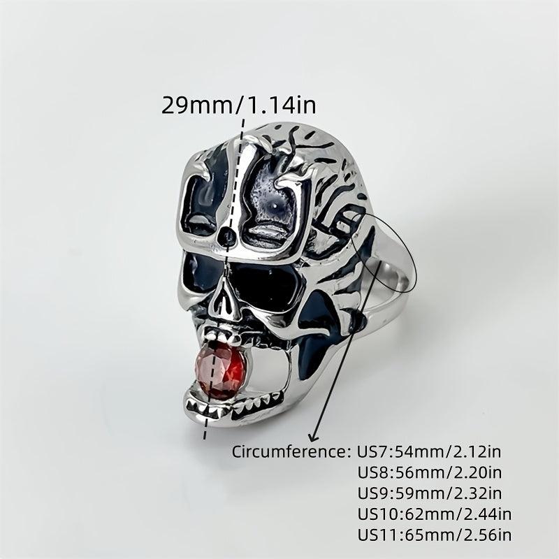 This Hip Hop Crown Skull Ring is made of 316 stainless steel with a striking red zirconia accent. It features a dark and edgy design suitable for men on sports and casual occasions, making it a perfect hip hop jewelry accessory.