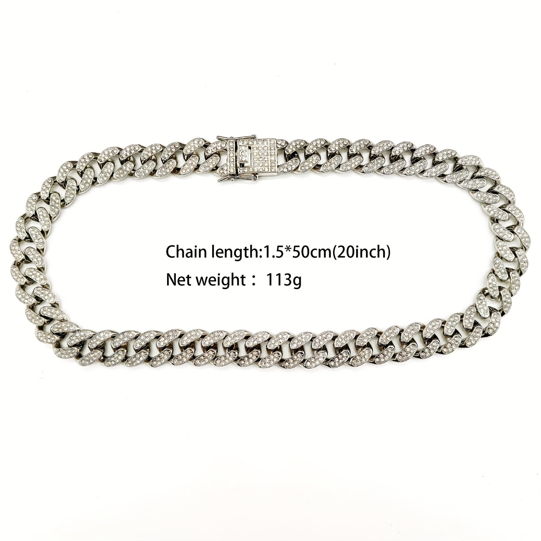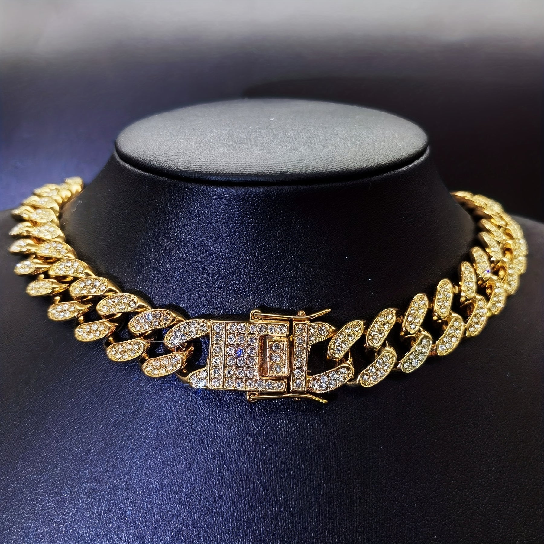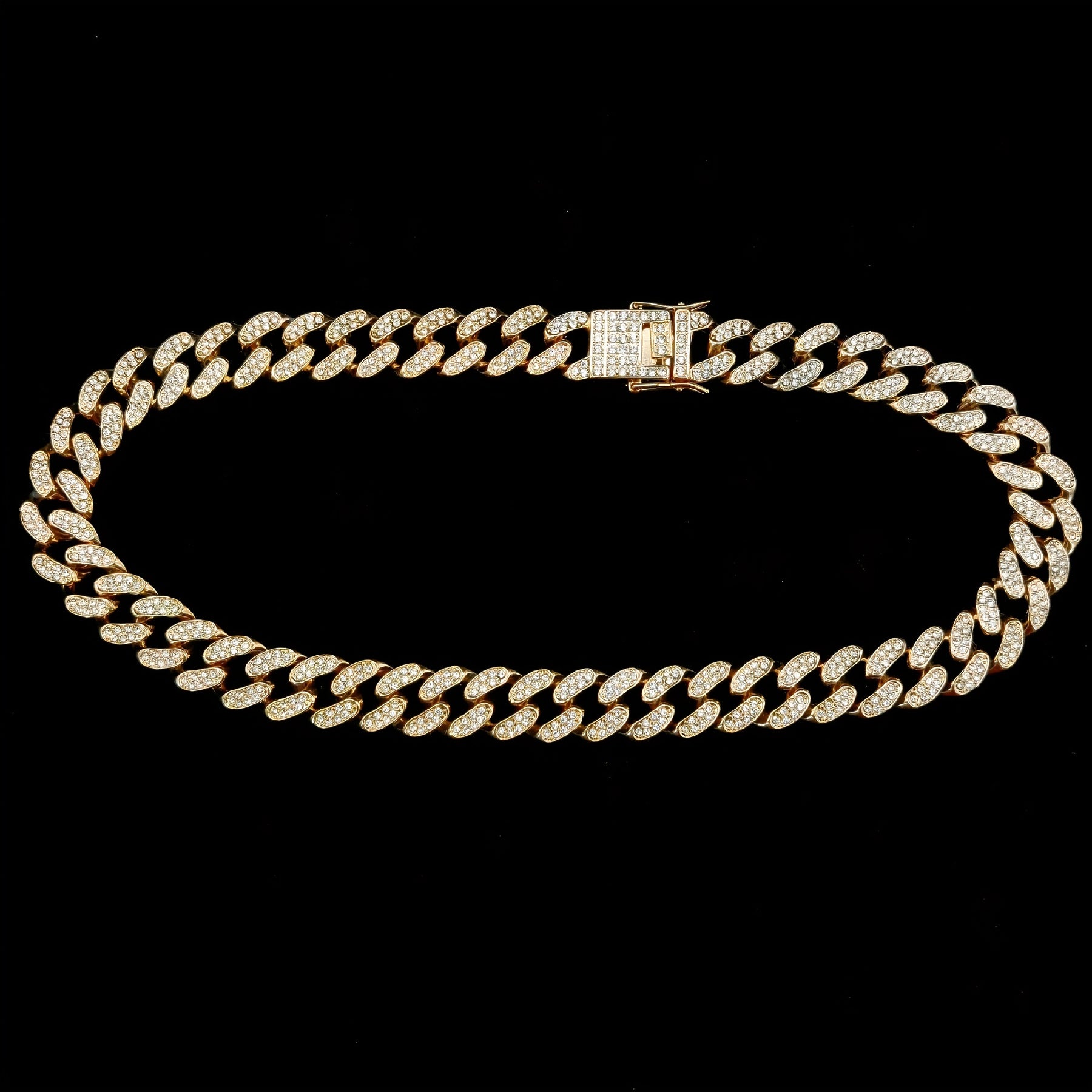 Upgrade your style with this hip hop Cuban chain necklace featuring inlaid rhinestones. Perfect for casual or special occasions.
