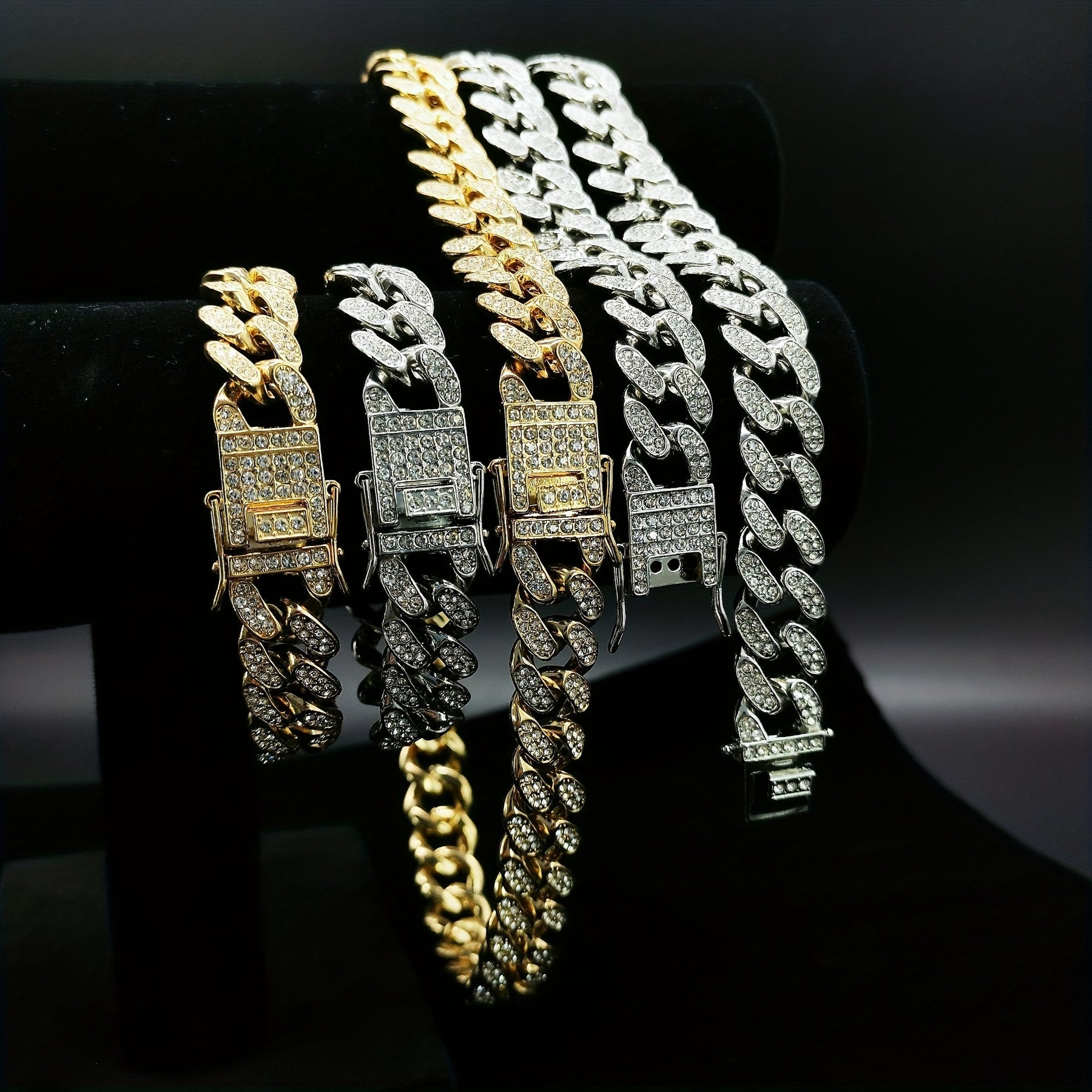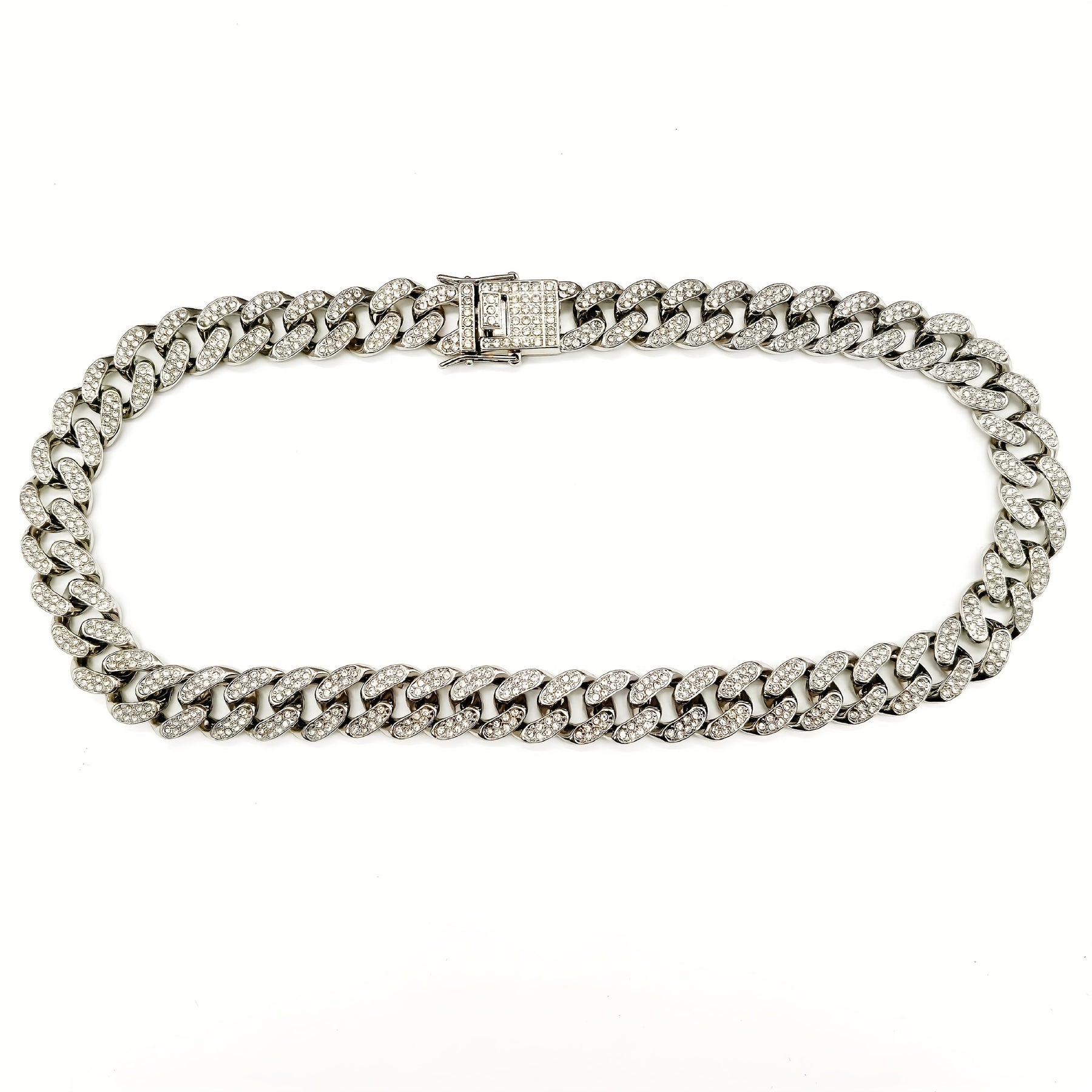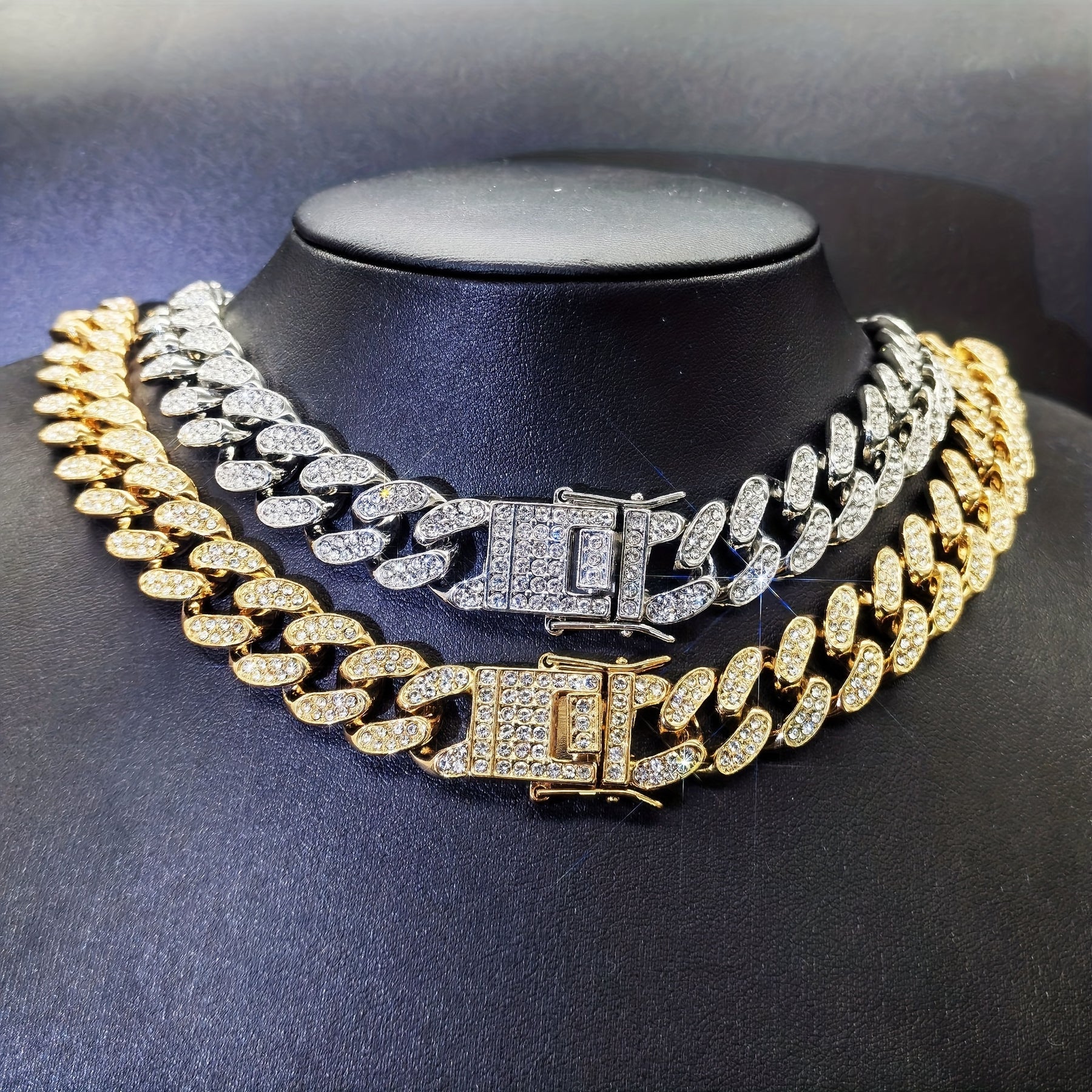 Upgrade your style with this hip hop Cuban chain necklace featuring inlaid rhinestones. Perfect for casual or special occasions.
