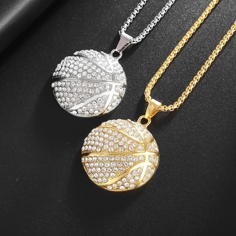 Add a touch of edgy style to your look with this basketball pendant necklace. Perfect for parties or athleisure outfits.