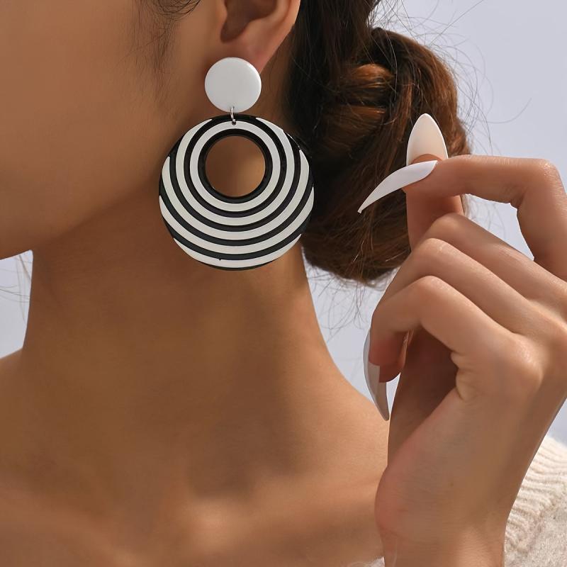 These hip hop style dangle earrings feature a hollow circle design that easily matches daily outfits and adds flair to party ensembles.