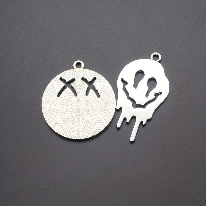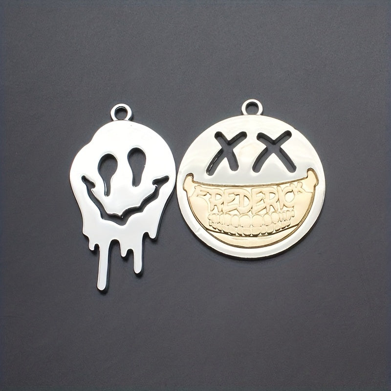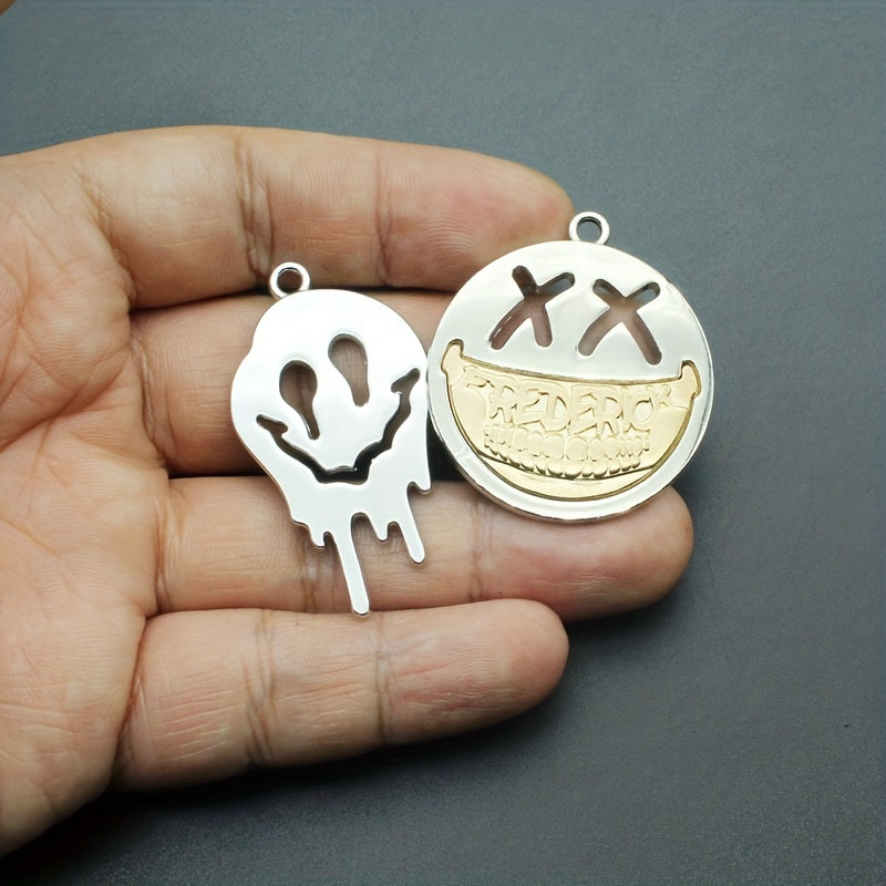 This hip hop accessory features a funny double pendant with Devil's smile and melted smile face design, perfect for DIY customization.