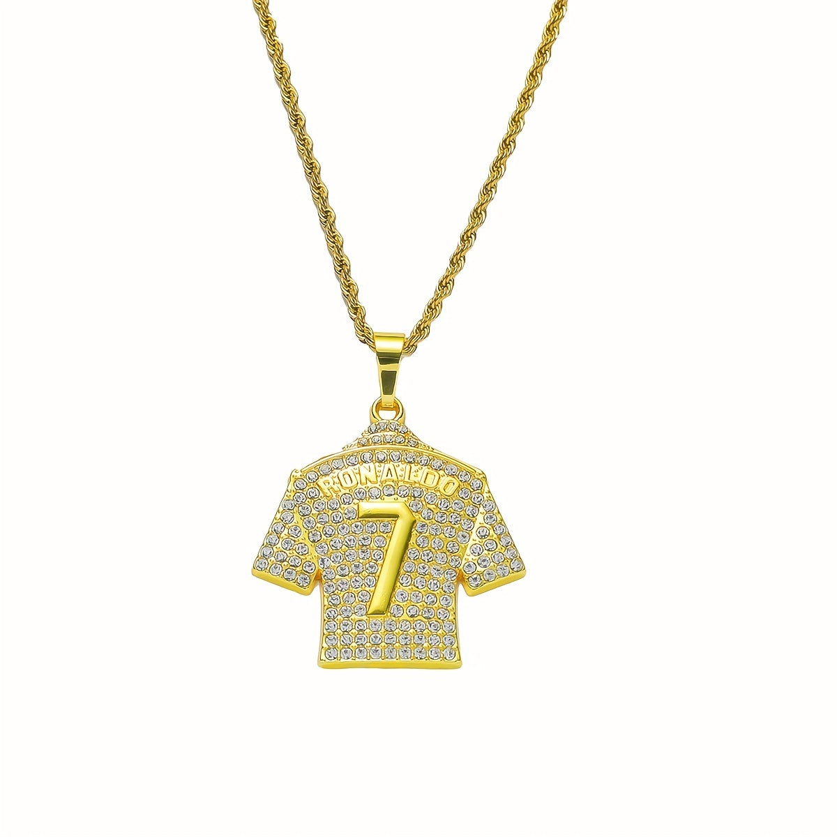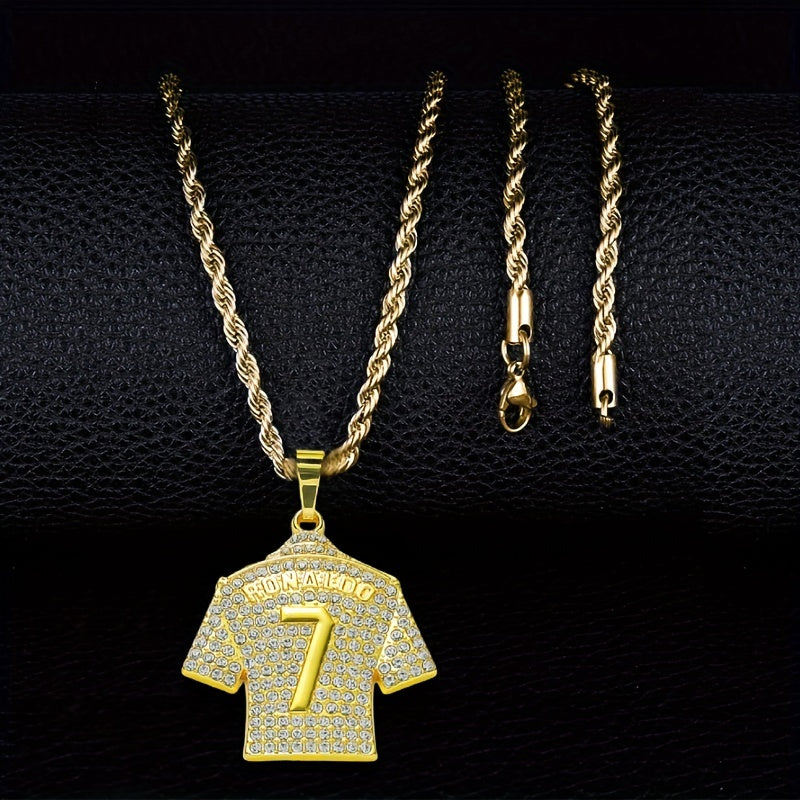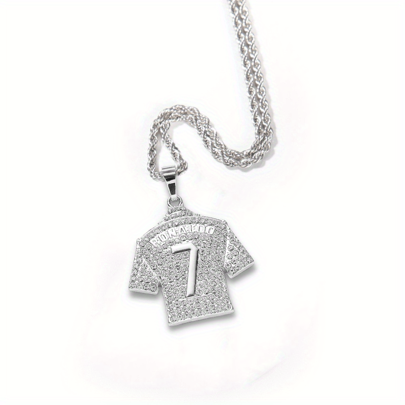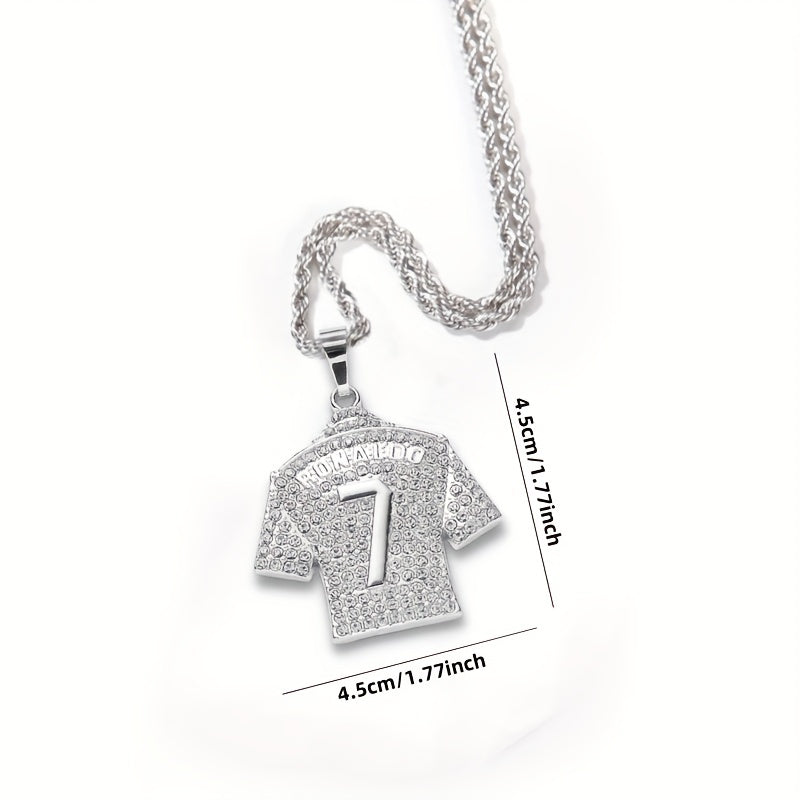 This studded faux diamond pendant features a No 7 design, perfect for men's hip hop style. The necklace is three-dimensional and eye-catching.