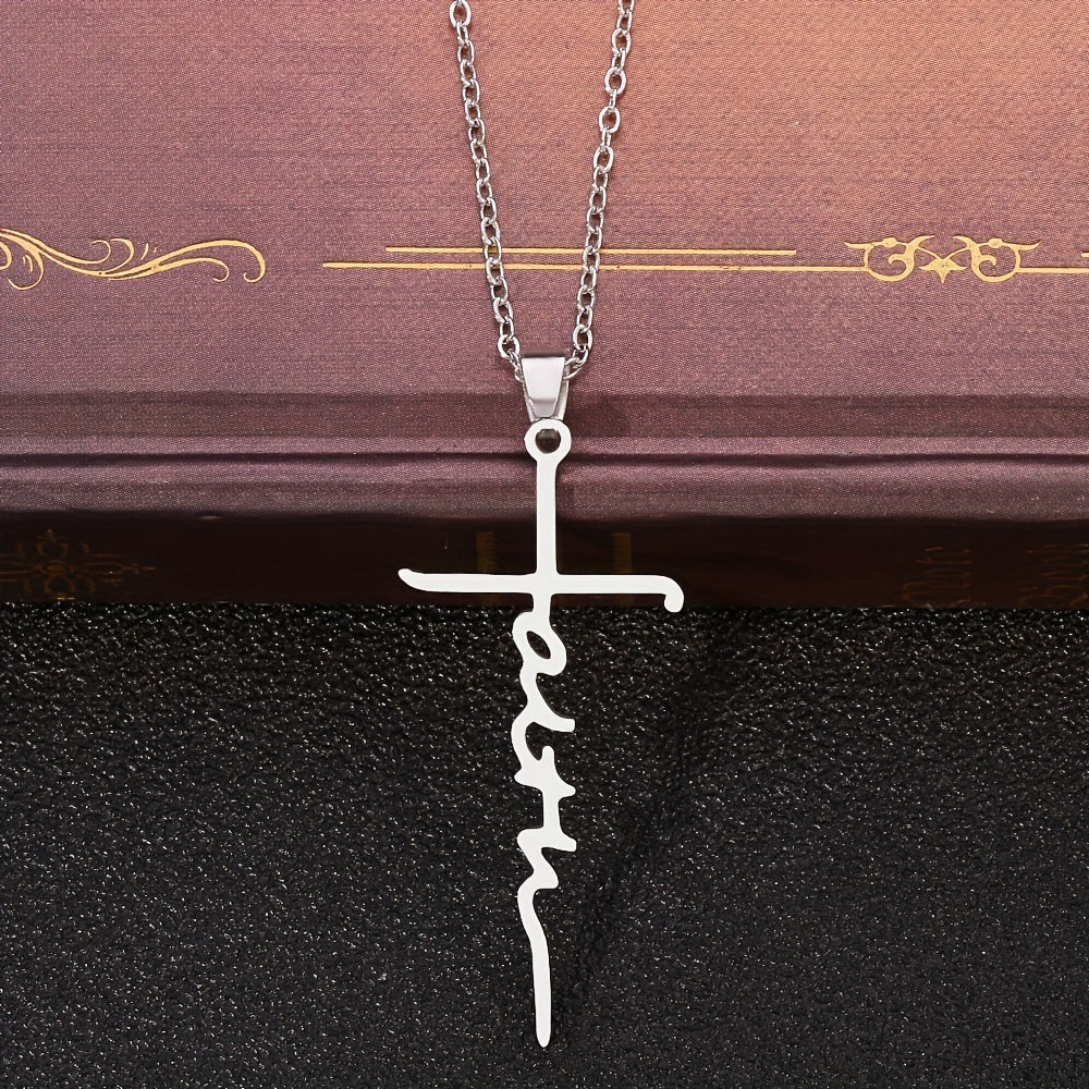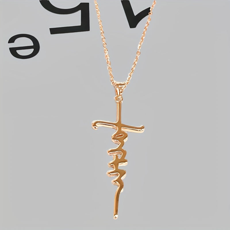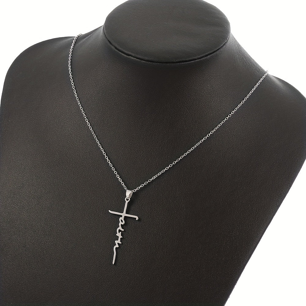 Stylish necklace featuring versatile design with English letter and cross pendant.