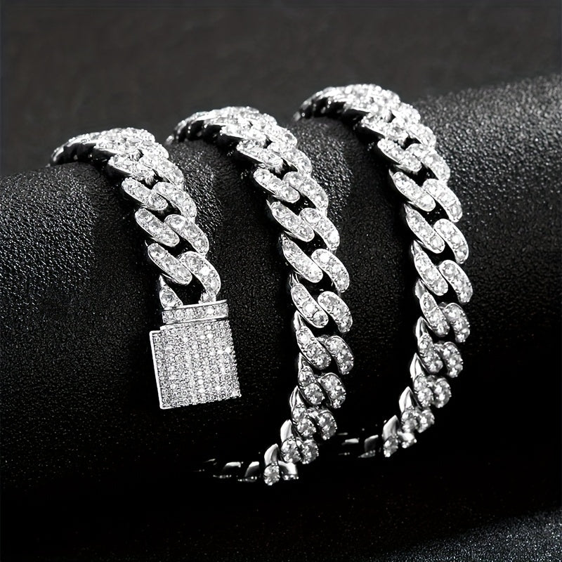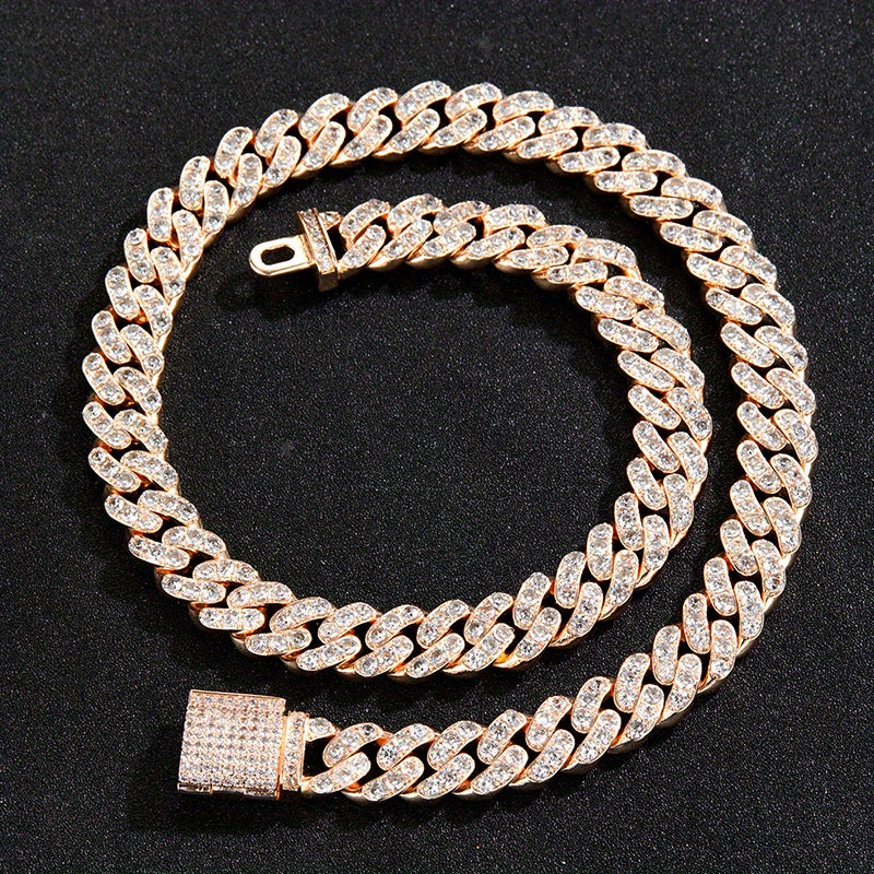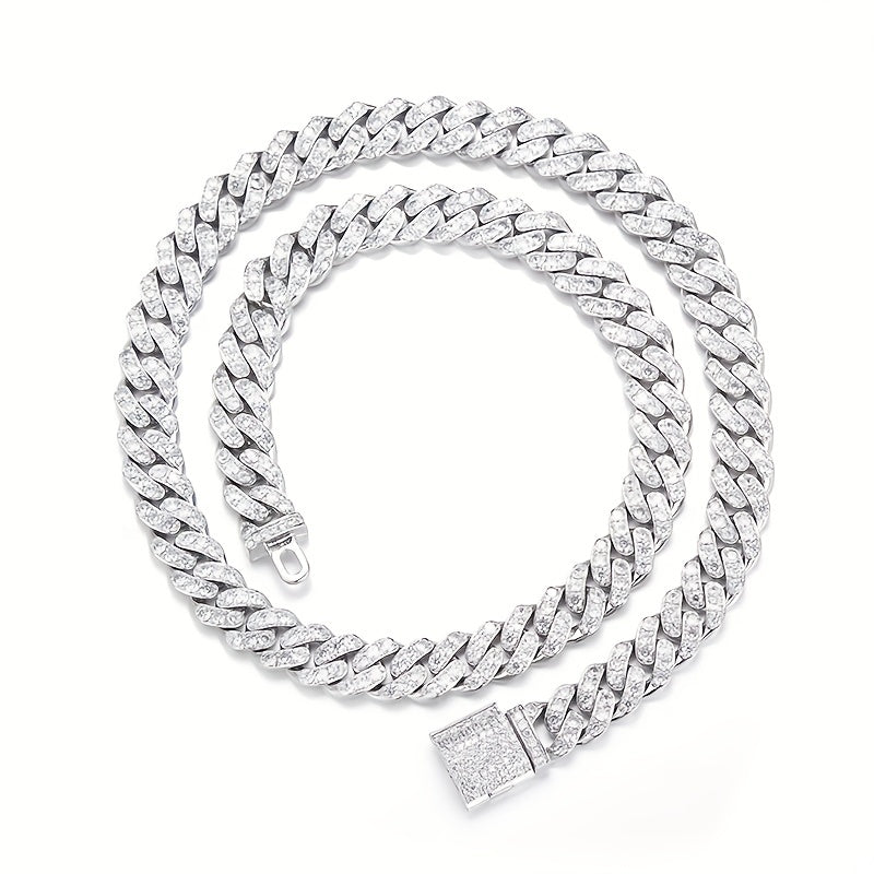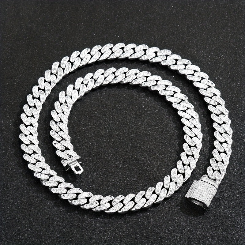 Upgrade your style with this hip hop Cuban chain necklace featuring artificial diamonds and zircon for a sleek and stylish look.