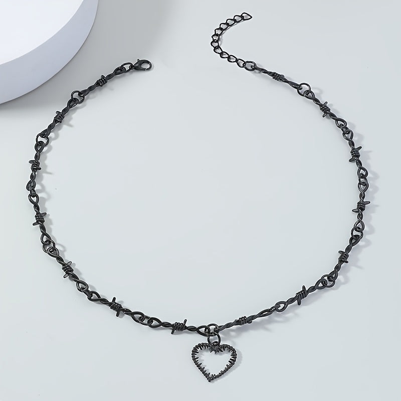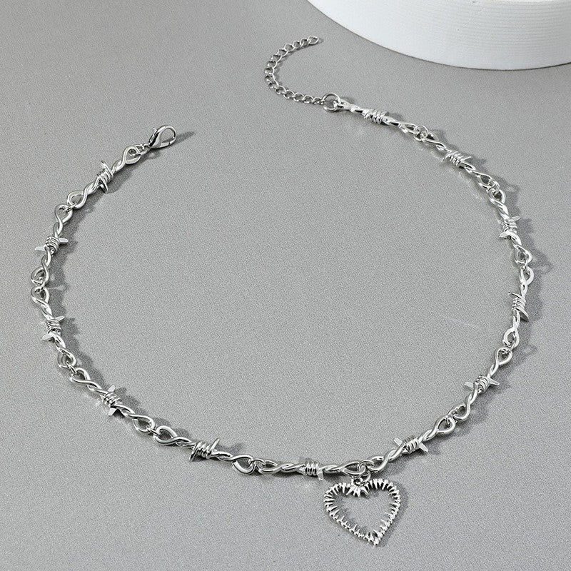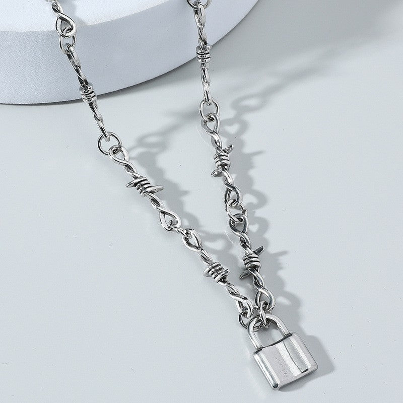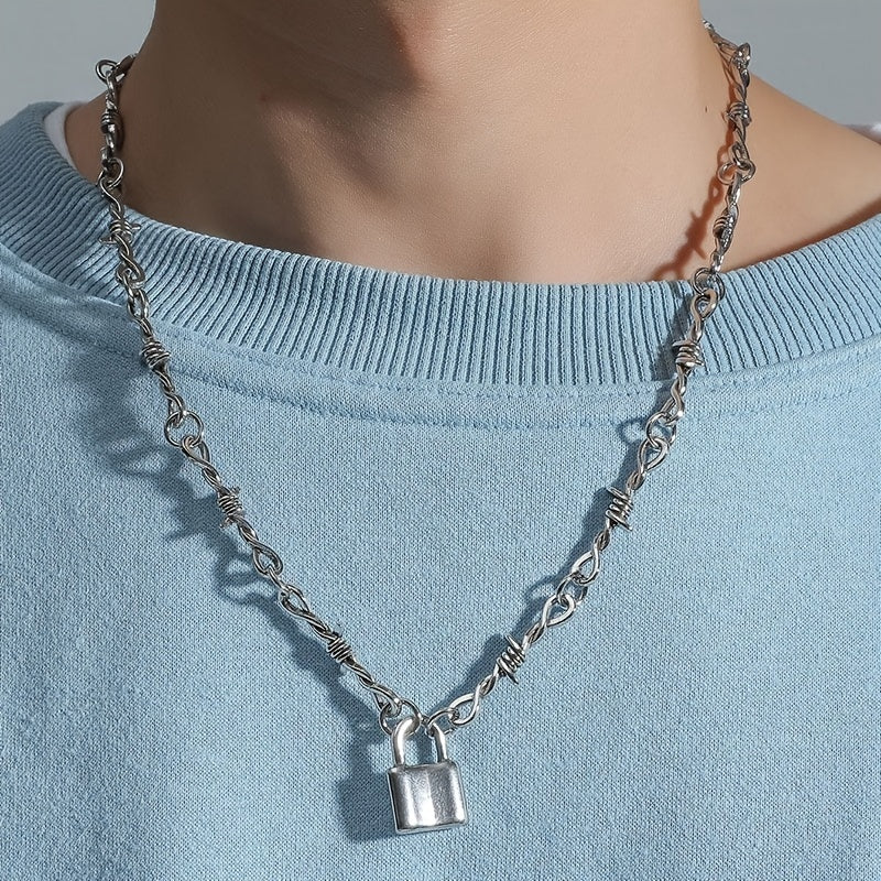 This stylish necklace features a padlock pendant on a barbed chain with a heart-shaped accent. Perfect gift for any occasion.