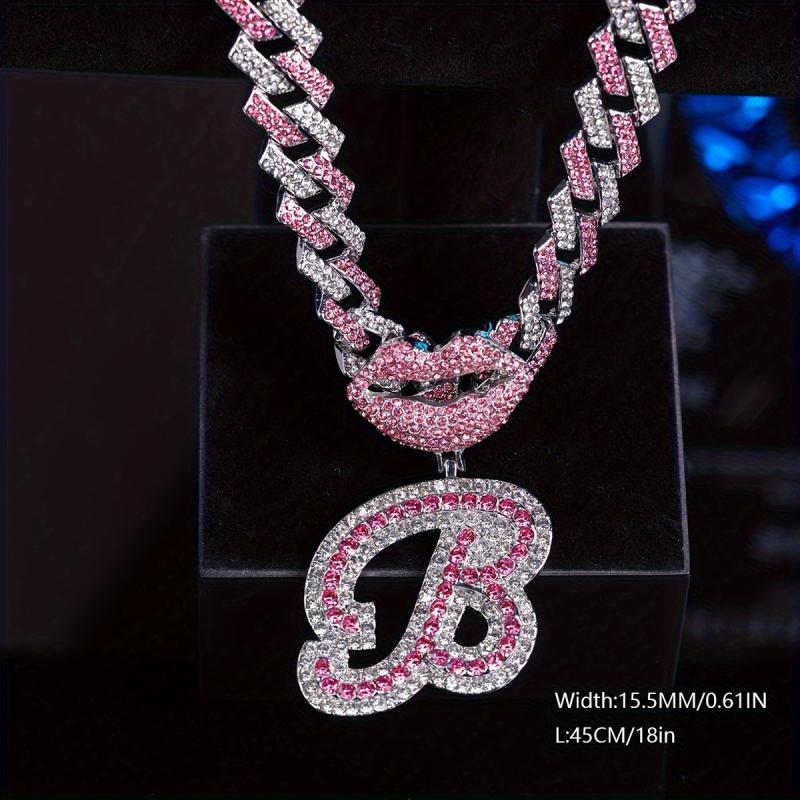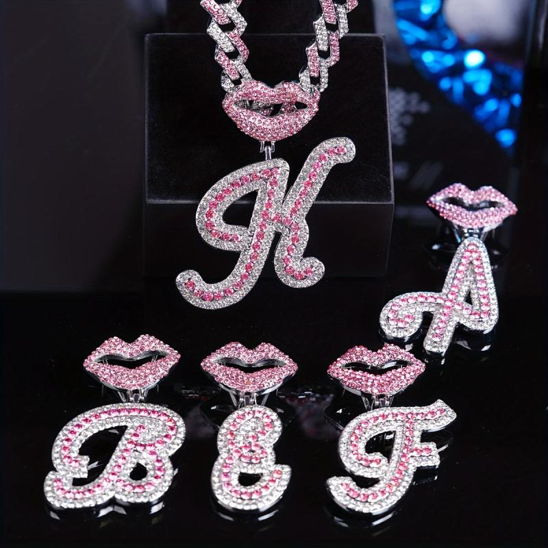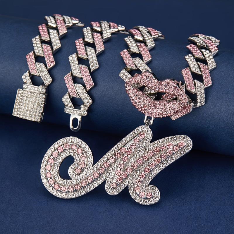 Add a touch of hip hop style to your look with this initial letter pendant necklace. This Y2K pink jewelry piece is perfect for men and women, making it a great gift idea.