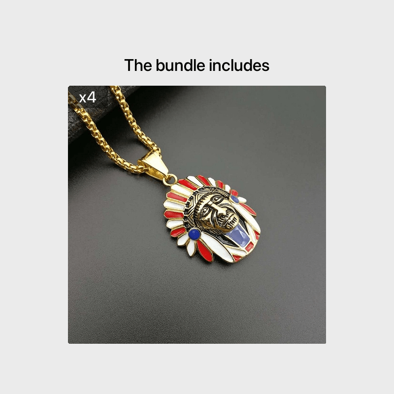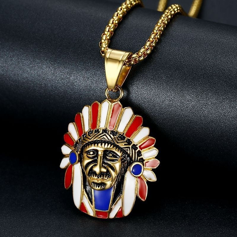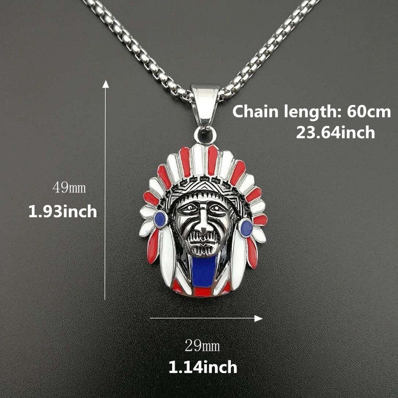 Add a unique touch to your style with this painted Indian pendant necklace. Perfect for hip hop enthusiasts.