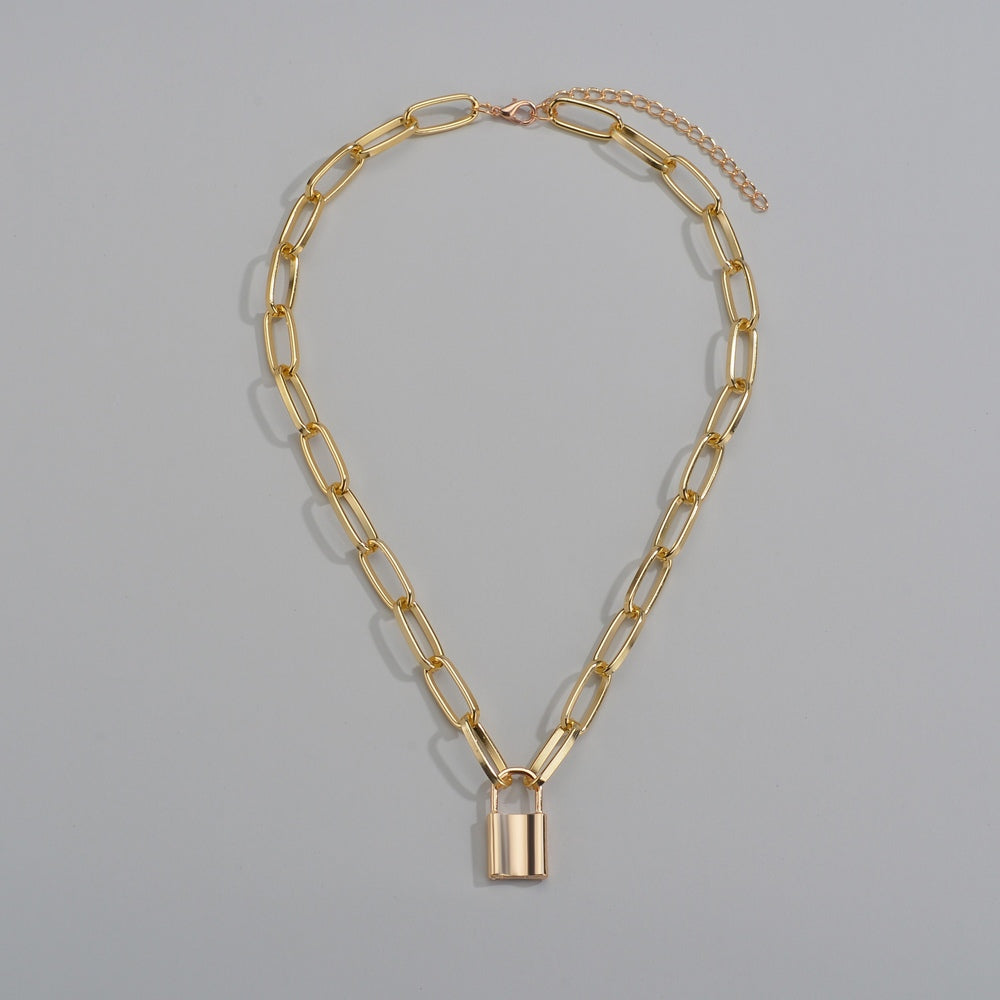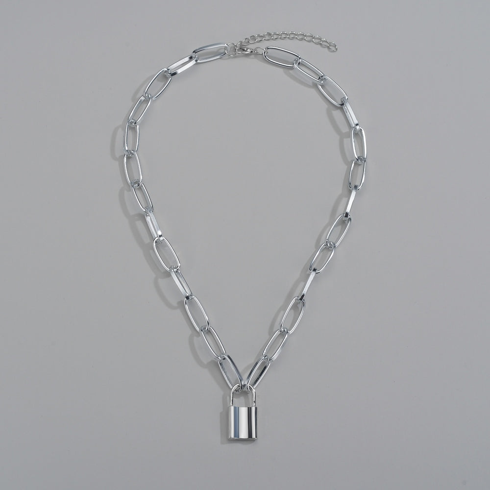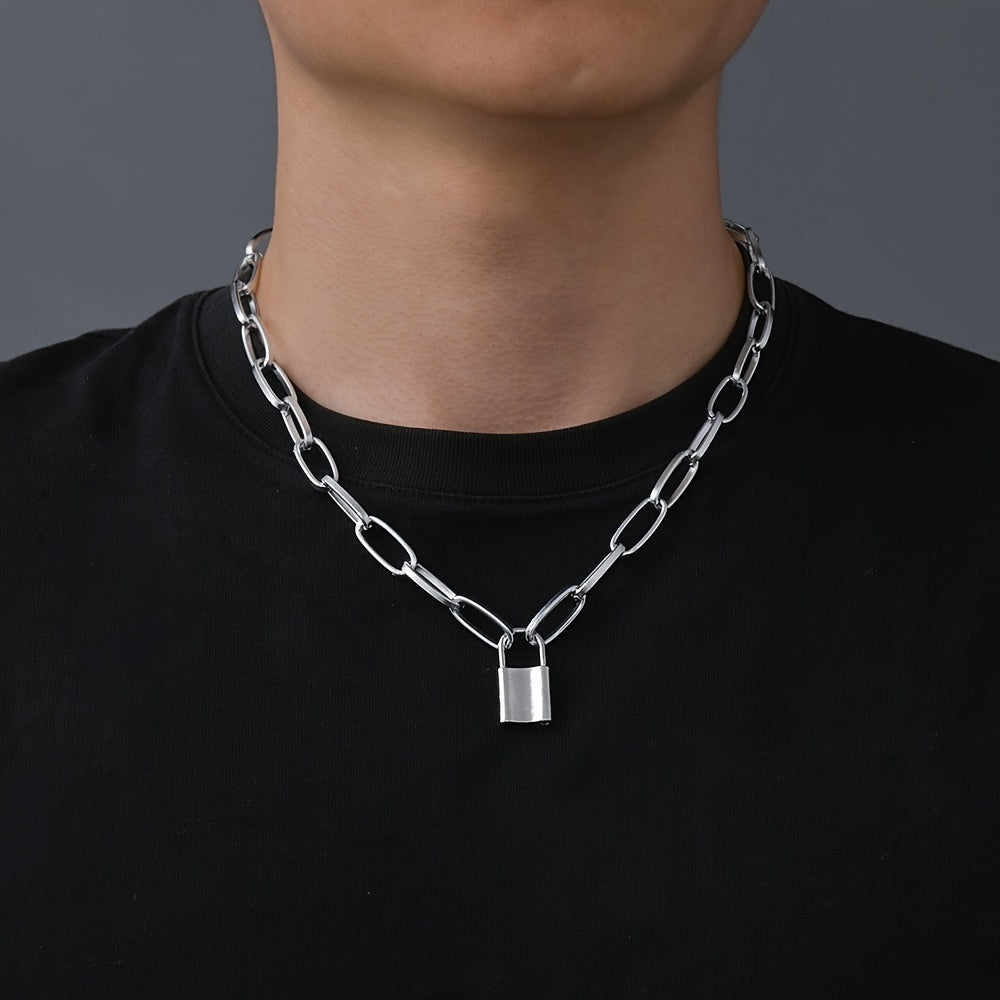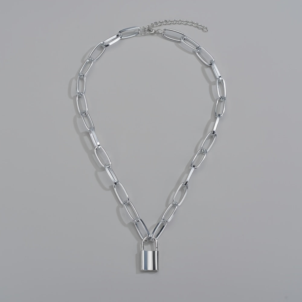 This trendy necklace features a metal padlock pendant on a thick chain link design, perfect for hip hop style enthusiasts.